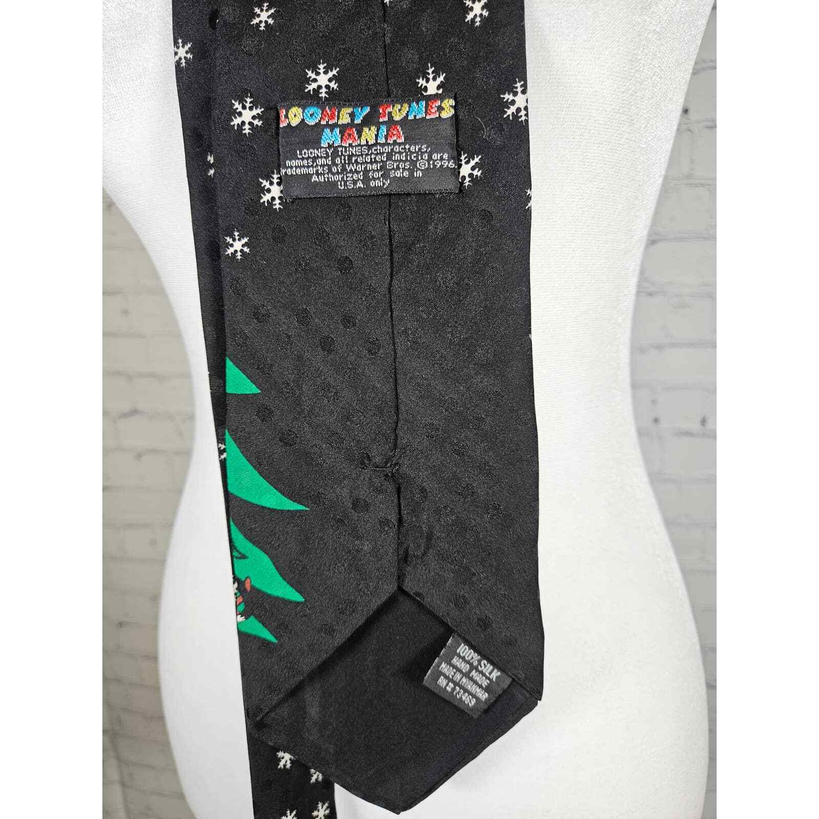- Vintage Looney Tunes 100% Silk Men's Tie Christmas Holiday Black Stars Character
