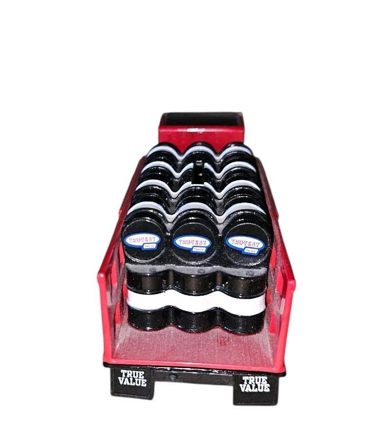 This vintage lot of 4 ERTL Ace True Value Hardware diecast 1:34 banks features a Kenworth truck in red and black. Each bank comes in its original unopened box and is part of the Kenworth Truck w/ Barrels series. Made of diecast material and with a scale of 1:34, these collectible vehicles are recommended for ages 8 and over. The banks are themed after True Value Hardware and showcase a Kenworth truck from 1925. A perfect addition to any diecast toy or vintage collection, these ERTL banks are a nostalgic piece of toy history.