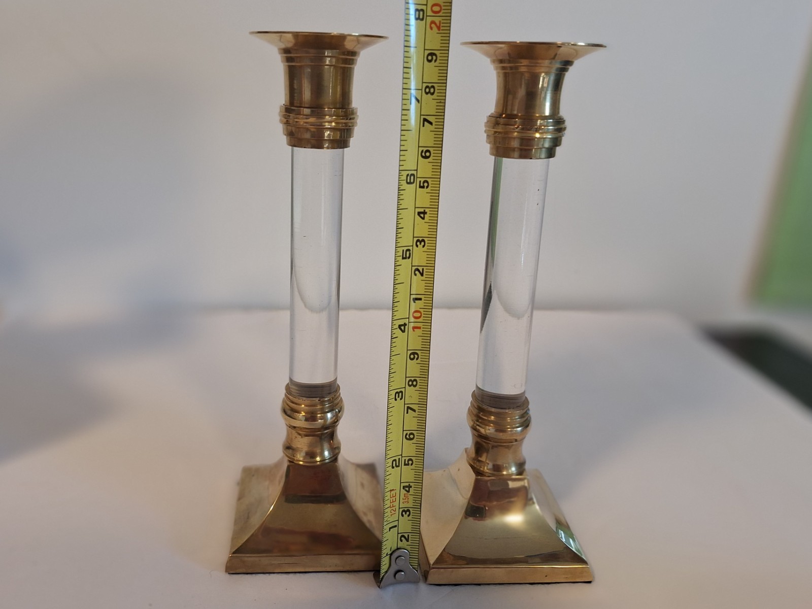 Vintage MCM Gatco Solid Brass Lucite Candlestick Holders 8” Tall Set of 2 India