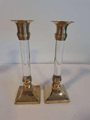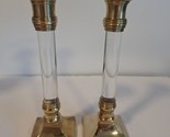Primary image for Vintage MCM Gatco Solid Brass Lucite Candlestick Holders 8” Tall Set of 2 India