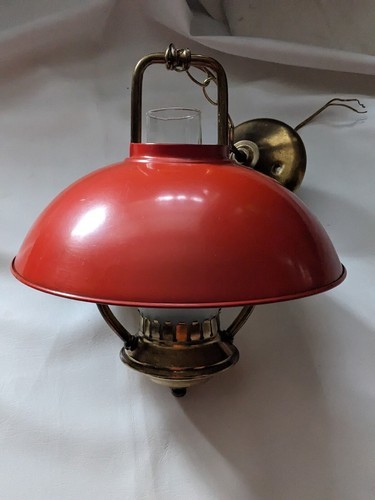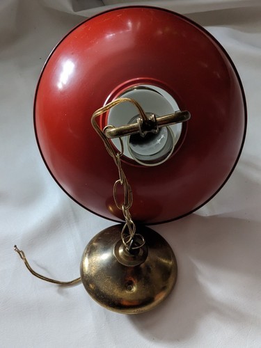 Up for sale is a used Vintage MCM Mid Century Orange Ceiling Light Kitchen Home Atomic Swag with Globe.