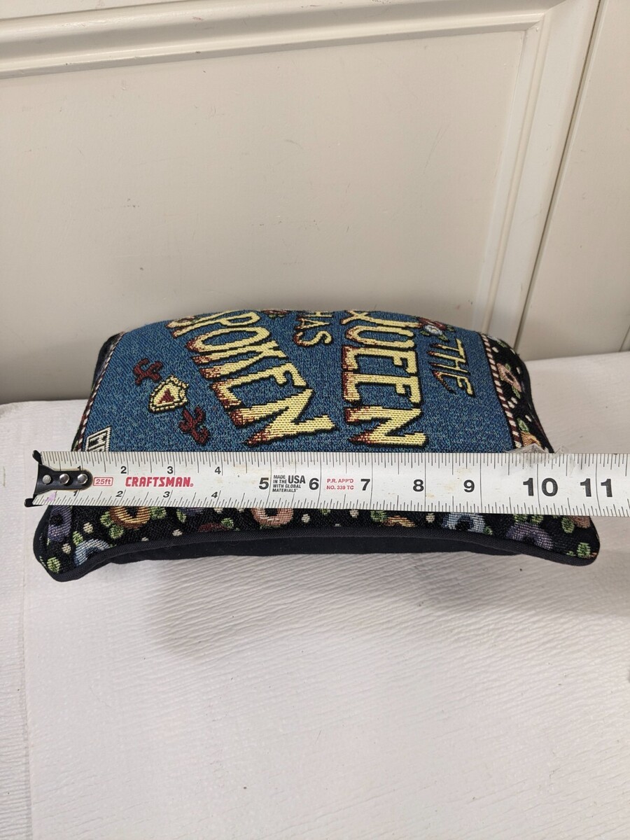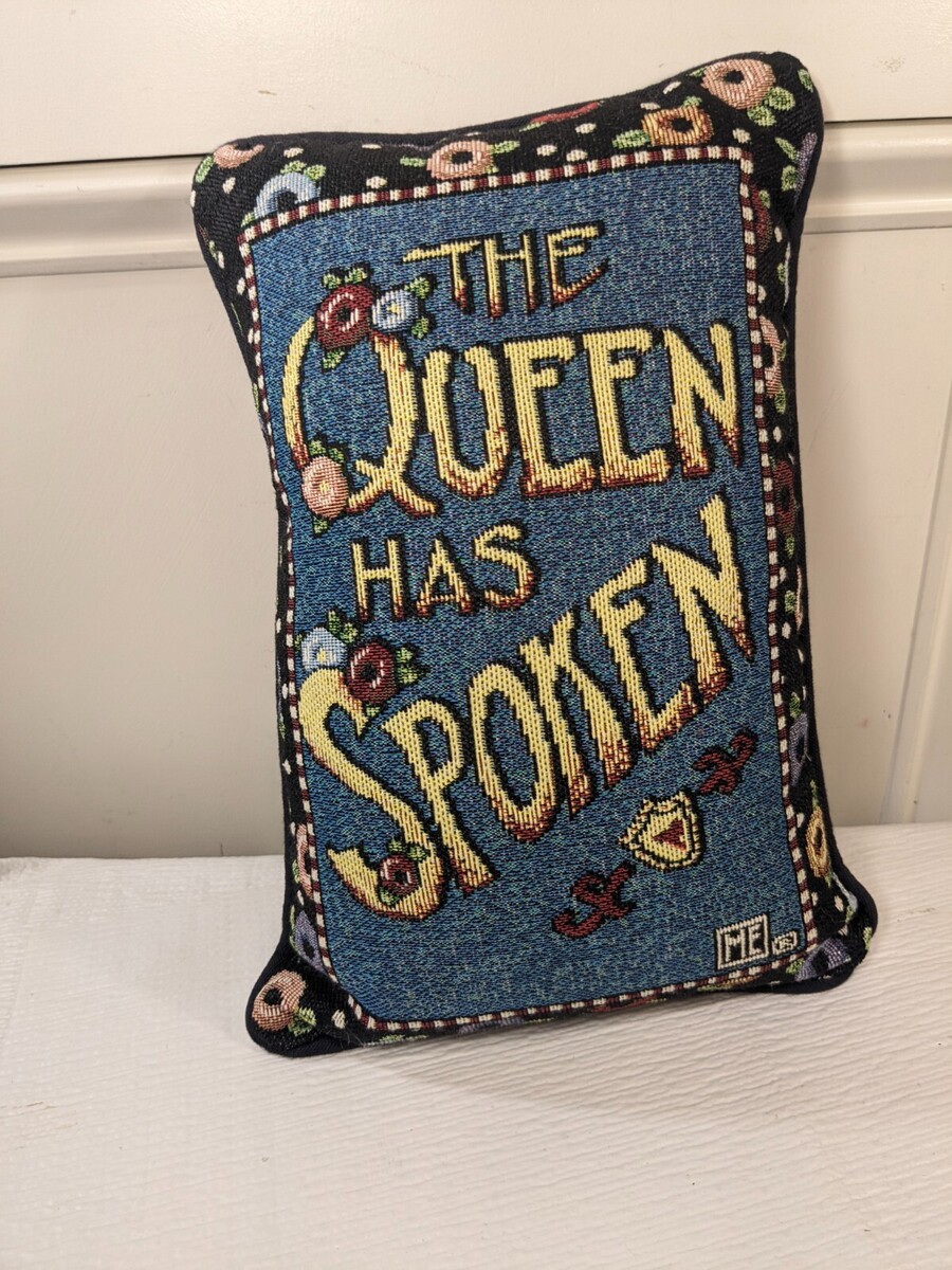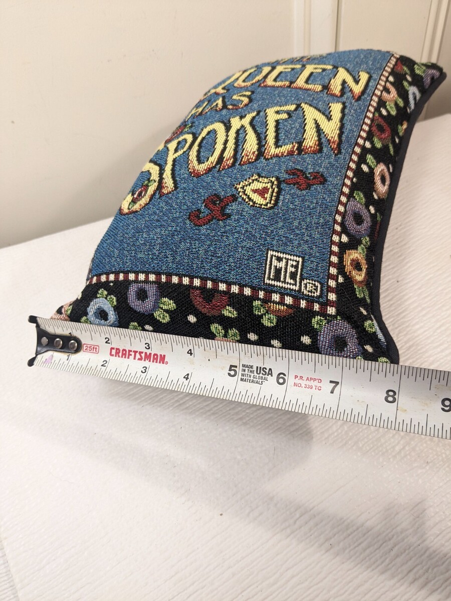 Vintage Mary Engelbreit Pillow The Queen has Spoken Accent Throw blue floral Small tapestry style throw pillow. Back has some of the stuffing showing/poking through as shown. See pics. Otherwise Very good condition.