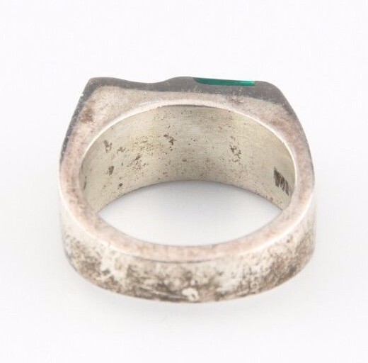 - Vintage Mexicain Argent Sterling Bague Avec Incrusté Vert Malachite (Taille 7)
