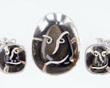 Vintage Mexico AE Jewelry Set Pendant Earrings W/ Obsidian Set in Sterling