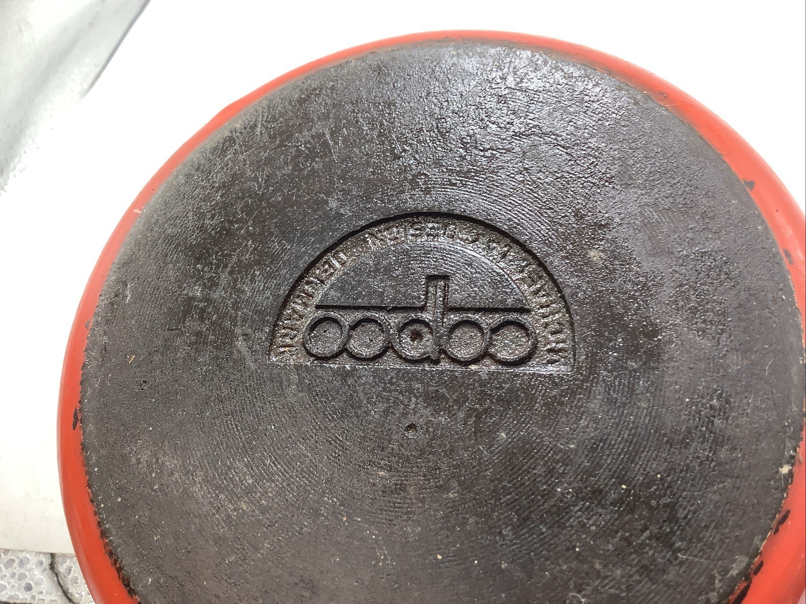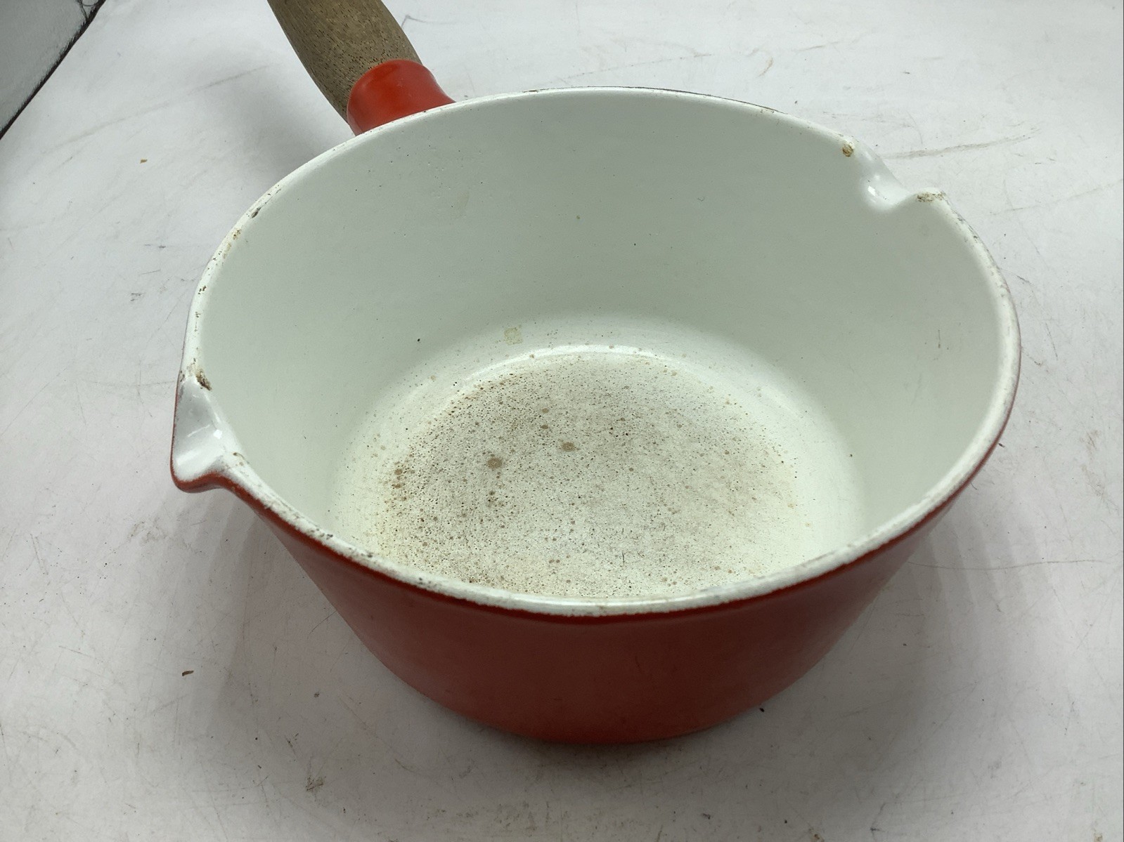 Primary image for Vintage Michael Lax Copco Sauce Pan Orange Enamel  2 Spouts Free Shipping!!!!