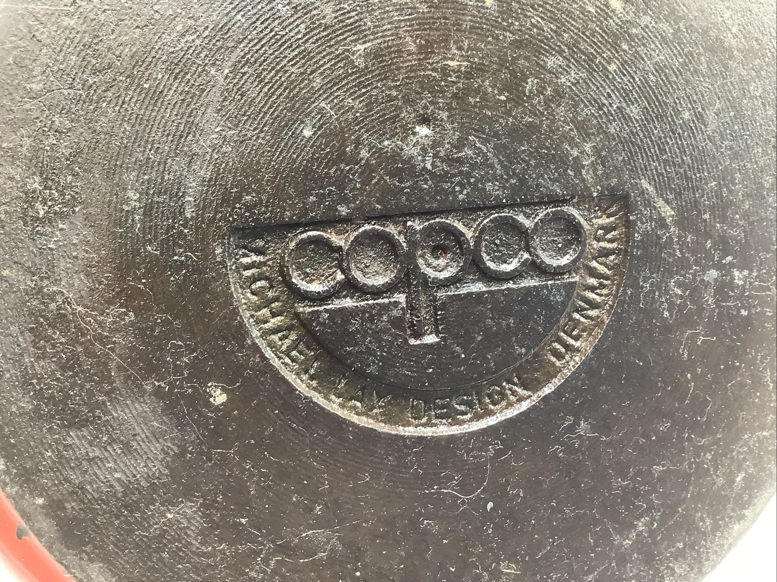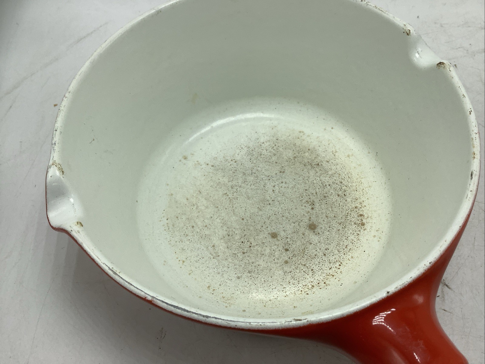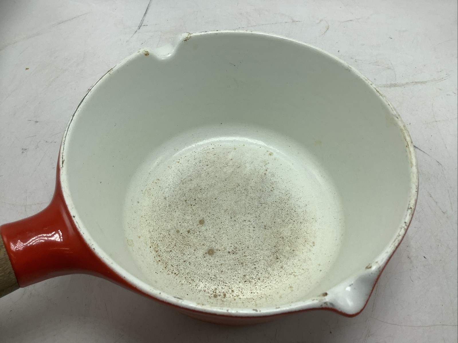Vintage Michael Lax Copco Sauce Pan Orange Enamel 2 Spouts no LId