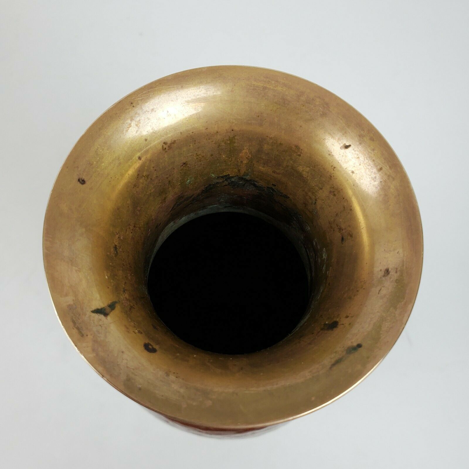 - Vintage Mid Century Modern Solid Brass Foundry Vase ART Hand Painted Mauve Sides
