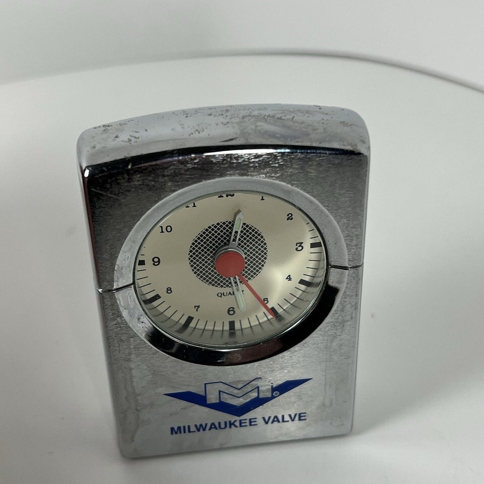 - Vintage Milwaukee Valve Desk Clock Small Stainless Logo New Battery