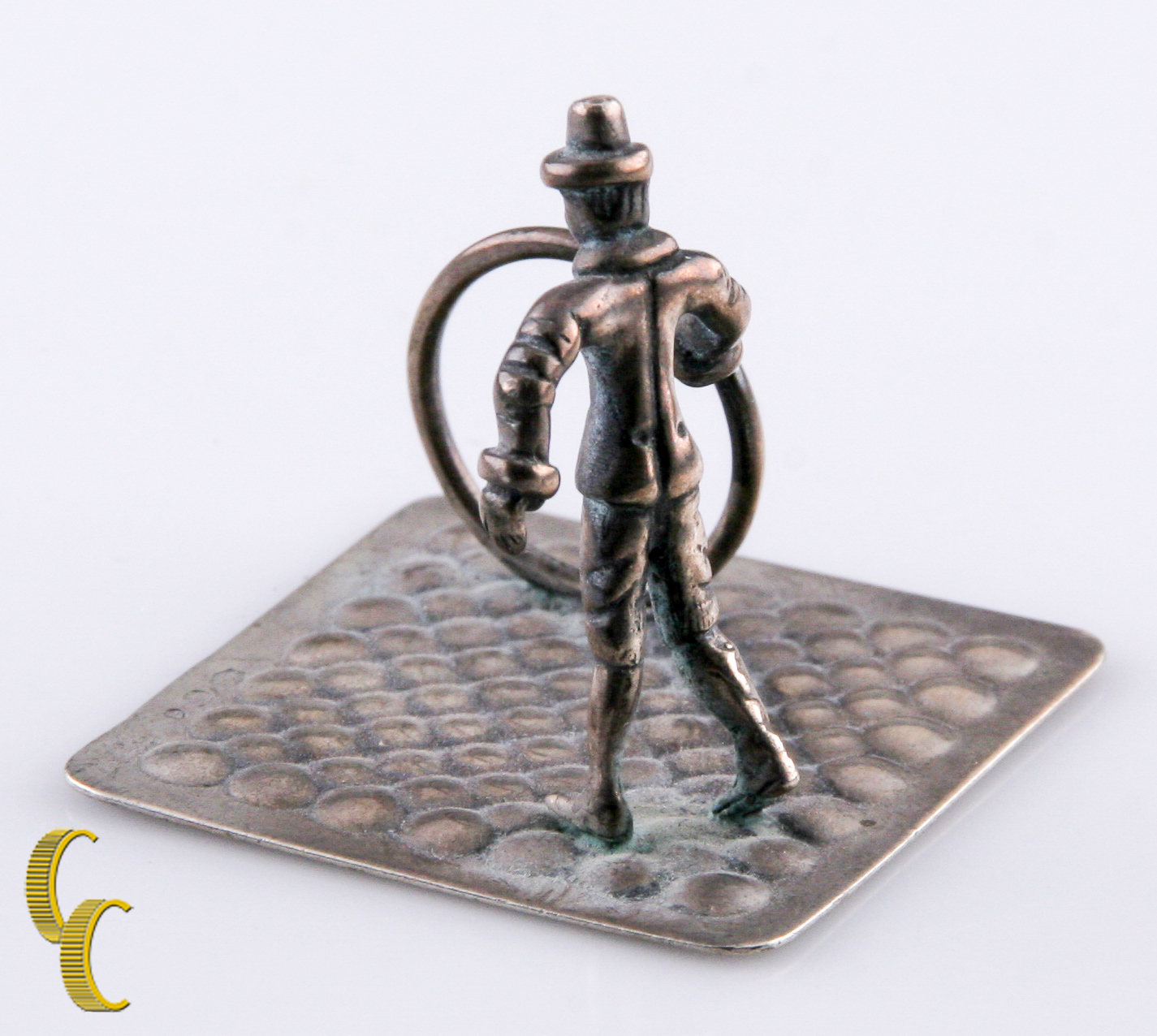 Vintage Miniature Silver Dollhouse Clown Man w/ Circus Hoop