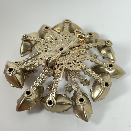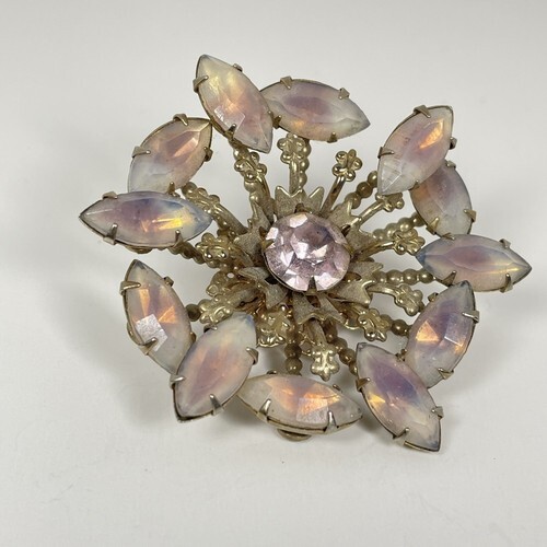 - Vintage Moonglow Purple Pink Crystal Rhinestone Flower Brooch 2 1/4" Unsigned