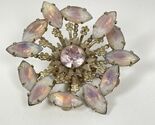 Vintage Moonglow Purple Pink Crystal Rhinestone Flower Brooch 2 1/4" Unsigned