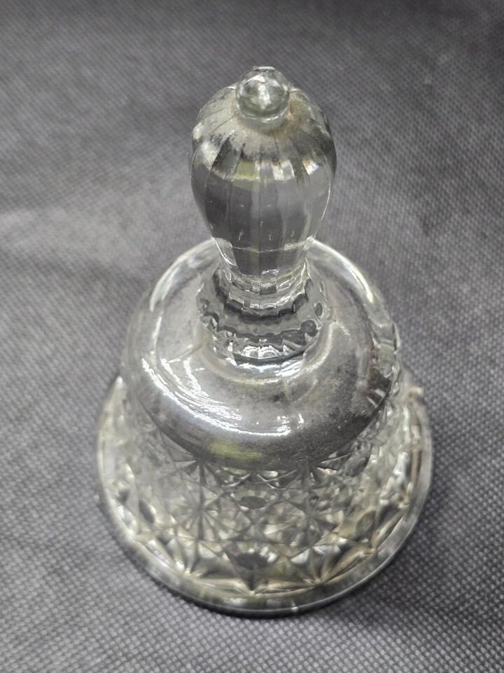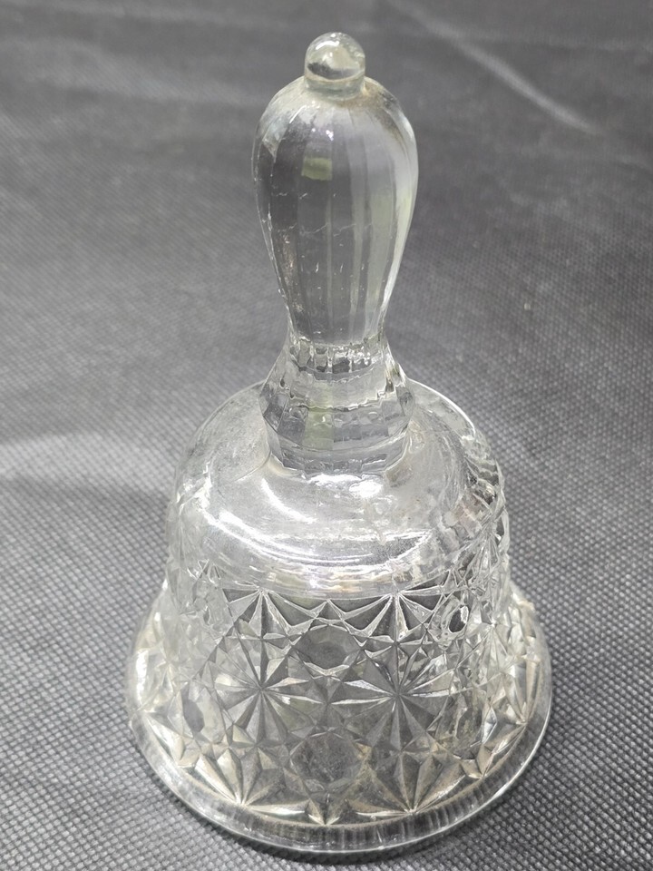 - Vintage MOSSER GLASS Ohio 5.25" Crystal Clear DAISY & BUTTON Bell With Clapper