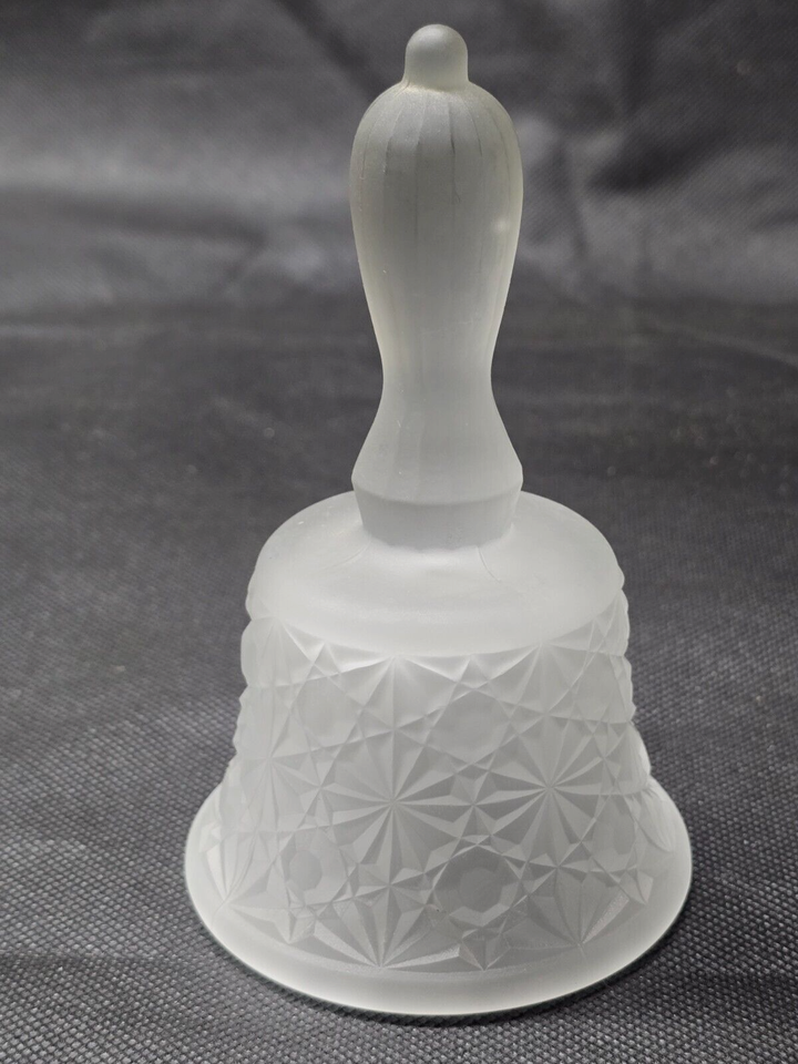 - Vintage MOSSER GLASS Ohio 5.25" Diamond Frost DAISY & BUTTON Bell With Clapper