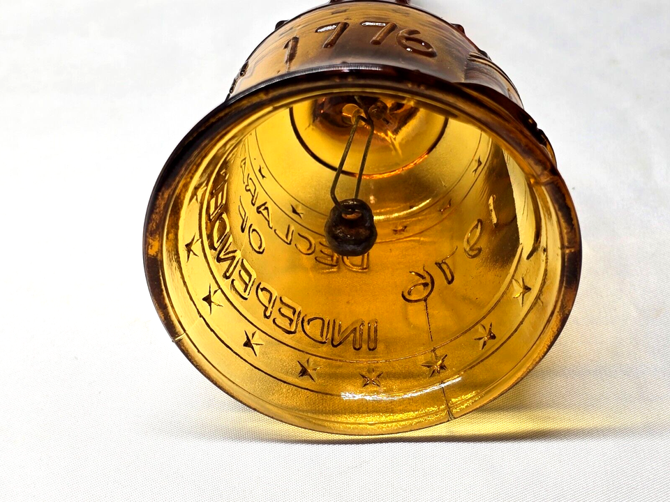 - Vintage MOSSER GLASS Ohio 6" Topaz Amber-Gold BICENTENNIAL Bell With Clapper