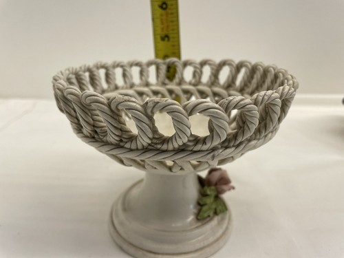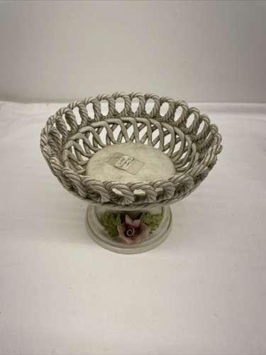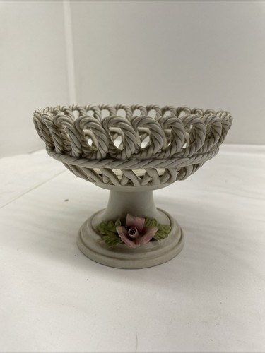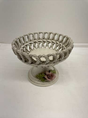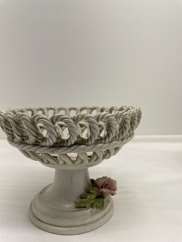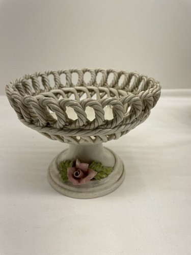 - Vintage N Capodimonte Small Woven Porcelain Floral Basket Classic Style Roses