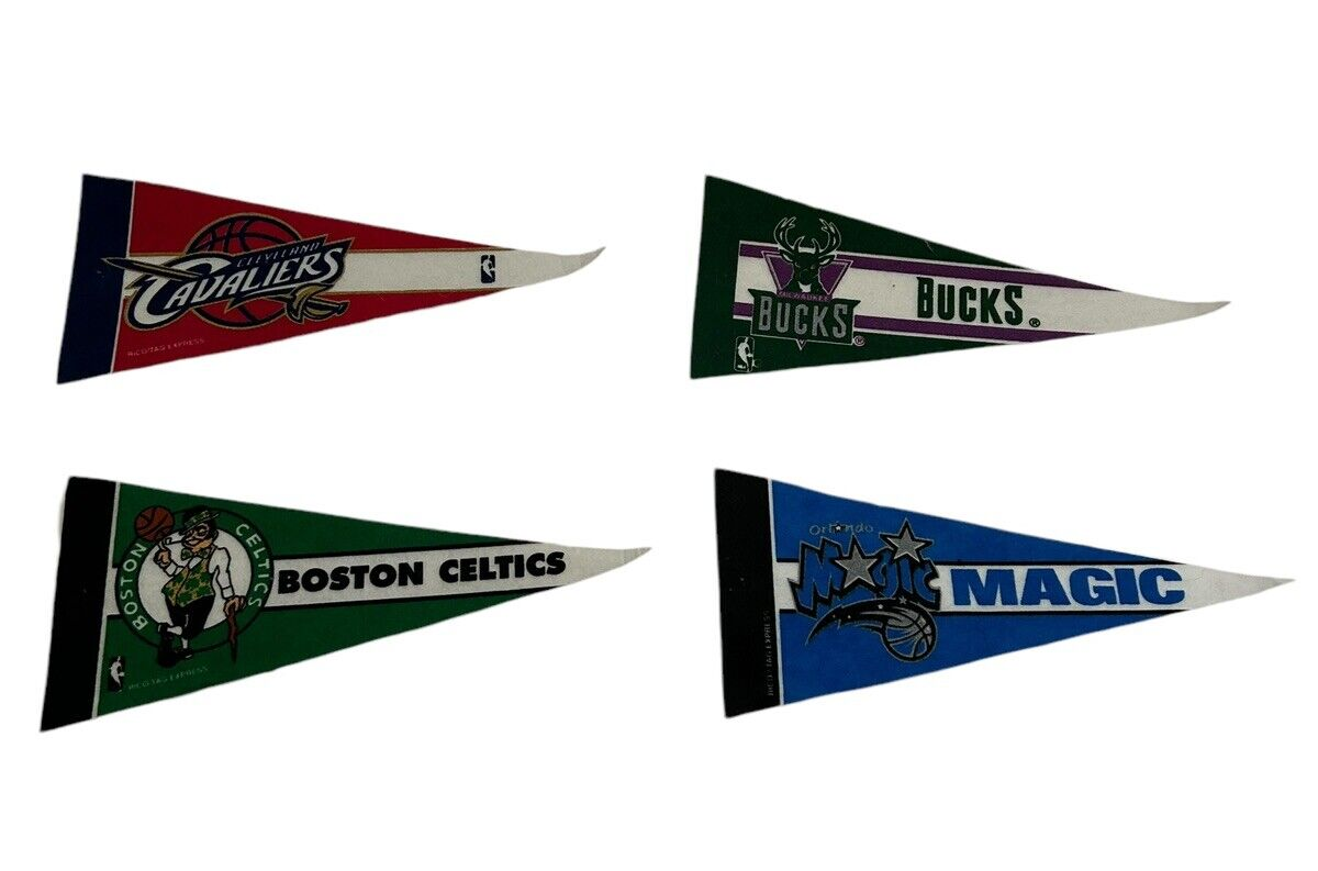 - Vintage NBA Basketball Mini Pennant Lot of (4) 9"x4” Felt Banner Flags