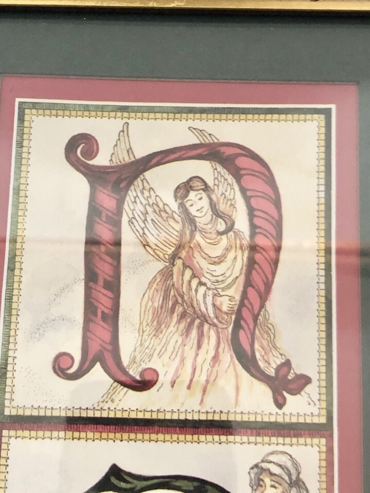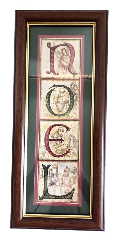Vintage NOEL Nativity Story Of Christmas Wall Sign Angel Jesus Spell Out Framed
