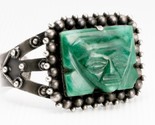 VINTAGE NATIVE AMERICAN AZTEC STEARLING SILVER CUFF BRACELET REAL CARVED WARRIOR FACE GREEN JADE