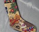 Primary image for Vintage Needlepoint Christmas Tree Stocking Velvet  Back Wool Teddy Bear Cat Dog