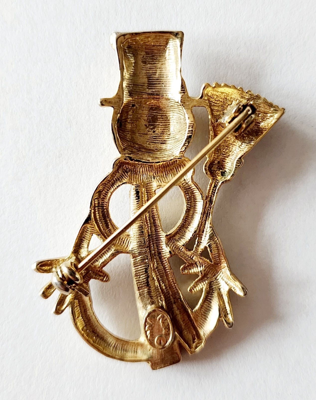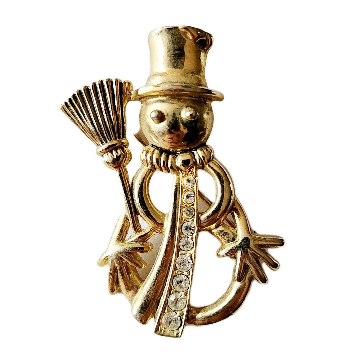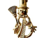 Vintage New View Snowman Brooch Pin Gold Tone Rhinestone Costume Jewelry F7A