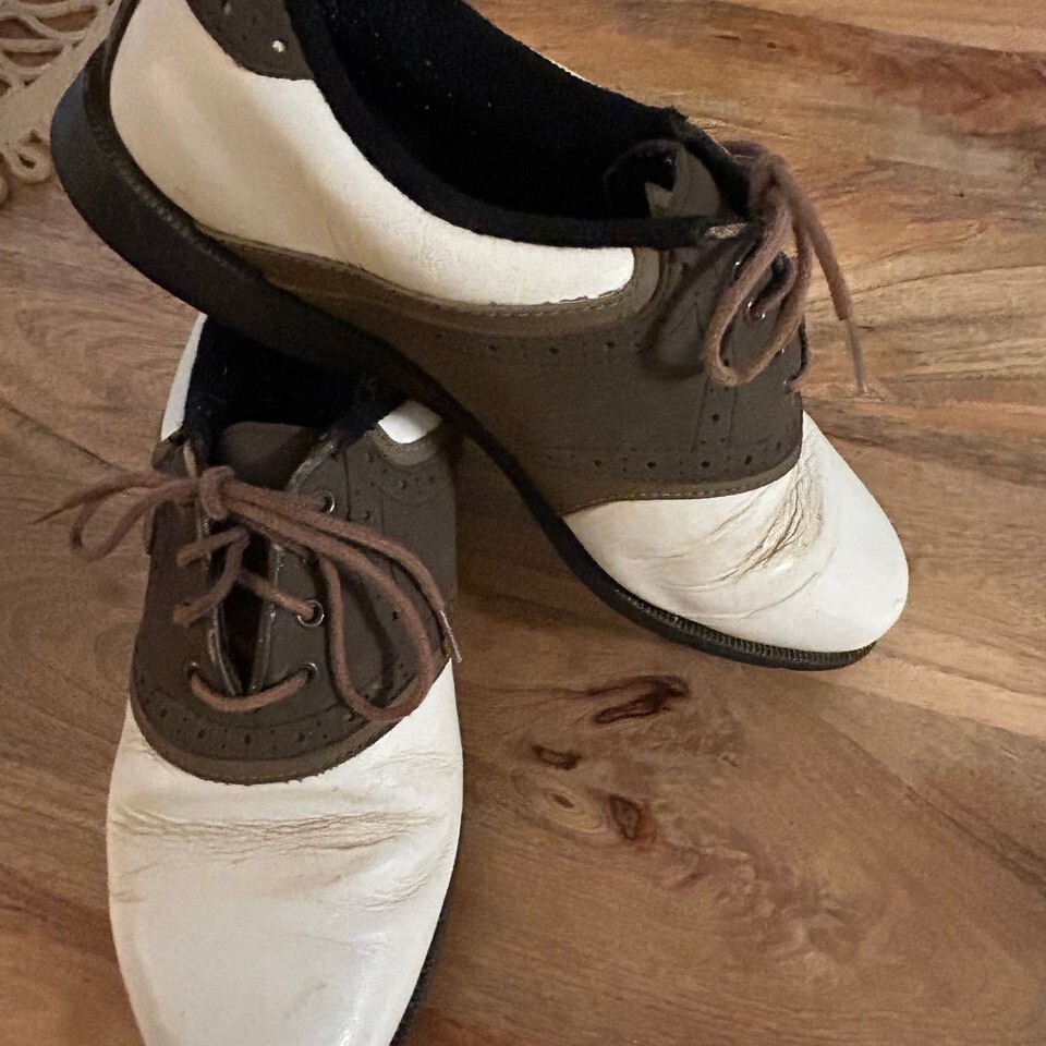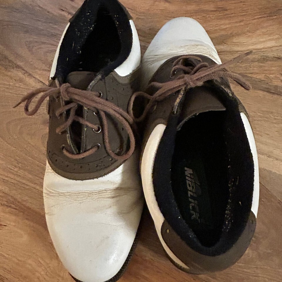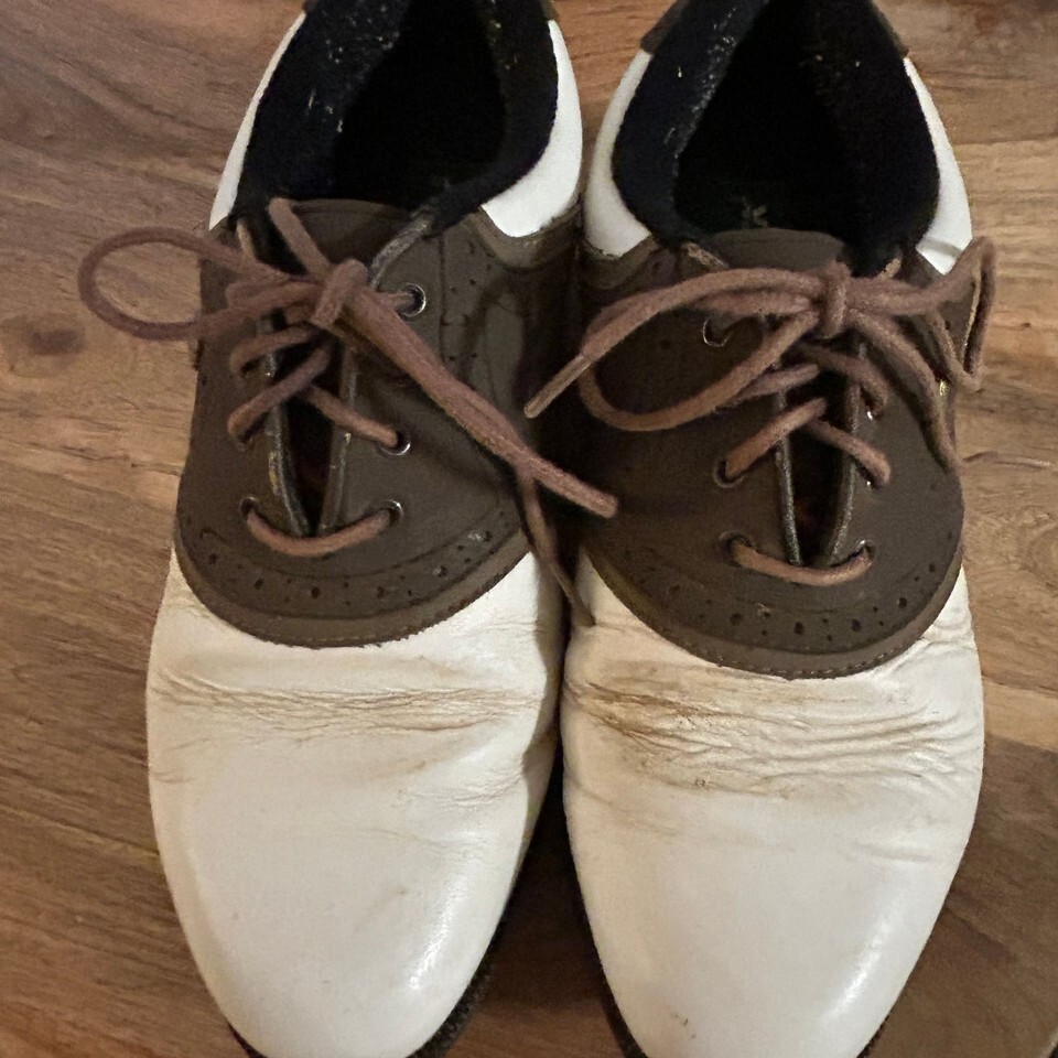 - Vintage Niblick men’s White & Brown Leather Golf Shoes with Laces