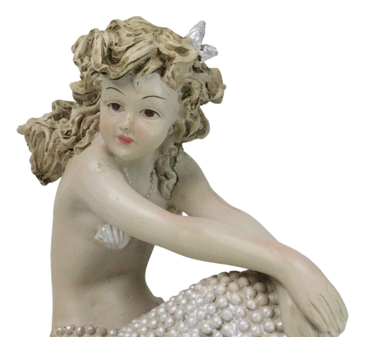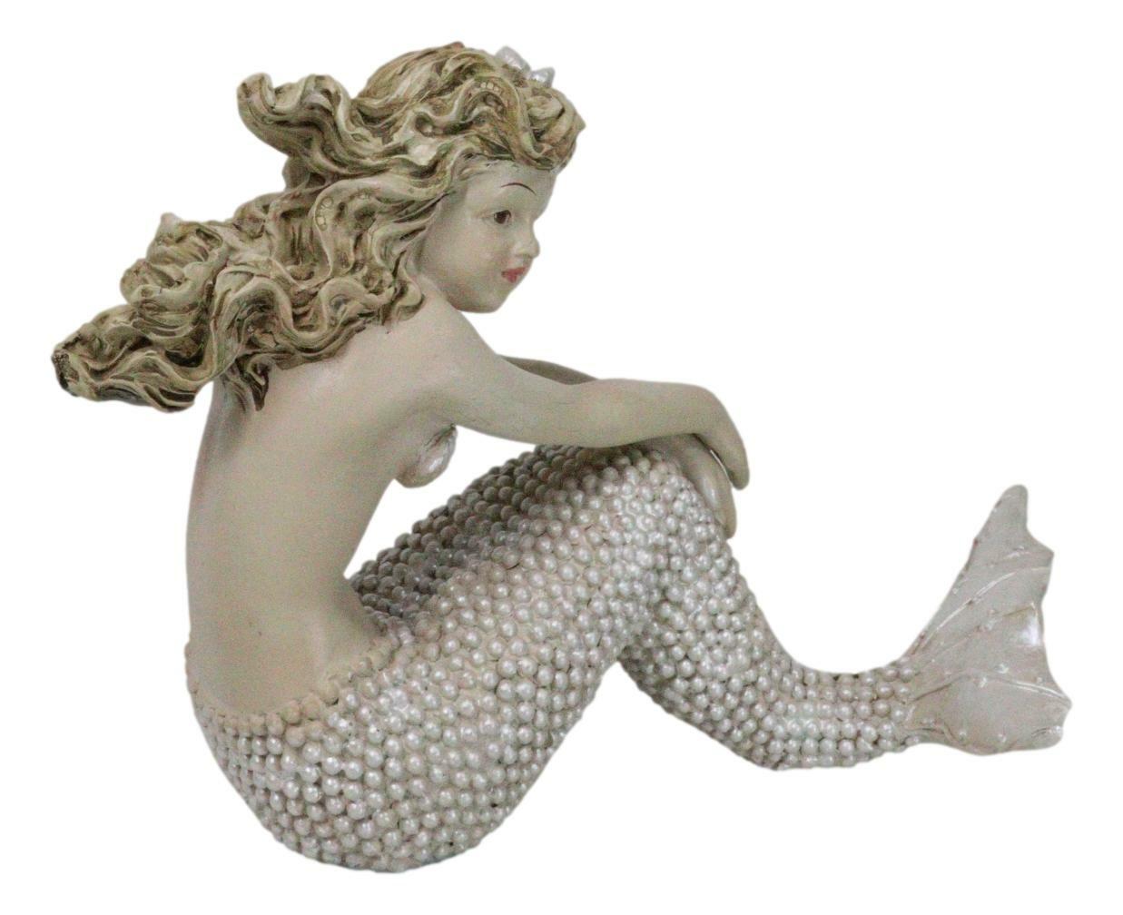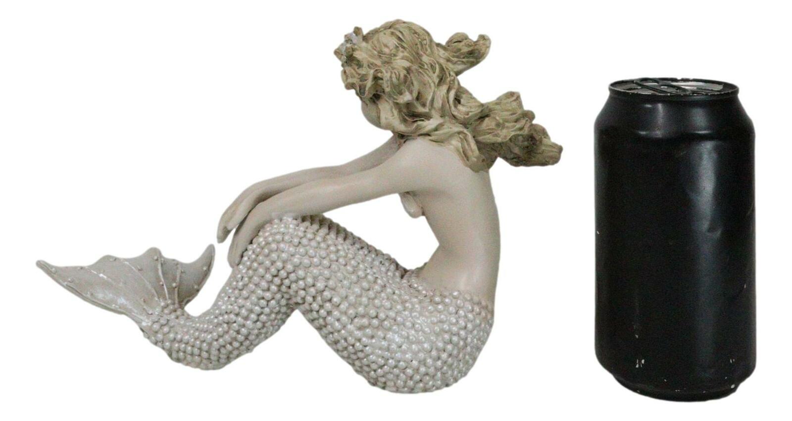 ? Infuse your space with the enchanting allure of the sea with the Vintage Mergirl Sitting Figurine. This exquisite piece features a beautiful mermaid, adorned with a pearl-beaded tail, sitting gracefully as she embodies the mystique of Atlantis. Perfect for coastal and nautical-themed decor, this figurine adds a touch of whimsy and elegance to any room. Whether displayed on a shelf, desk, or mantle, it serves as a captivating reminder of the ocean's timeless beauty and charm.