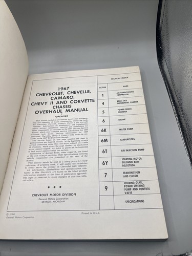 - Vintage Original 1967 Chevrolet Overhaul Manual Chevelle Camaro Chevy Corvette