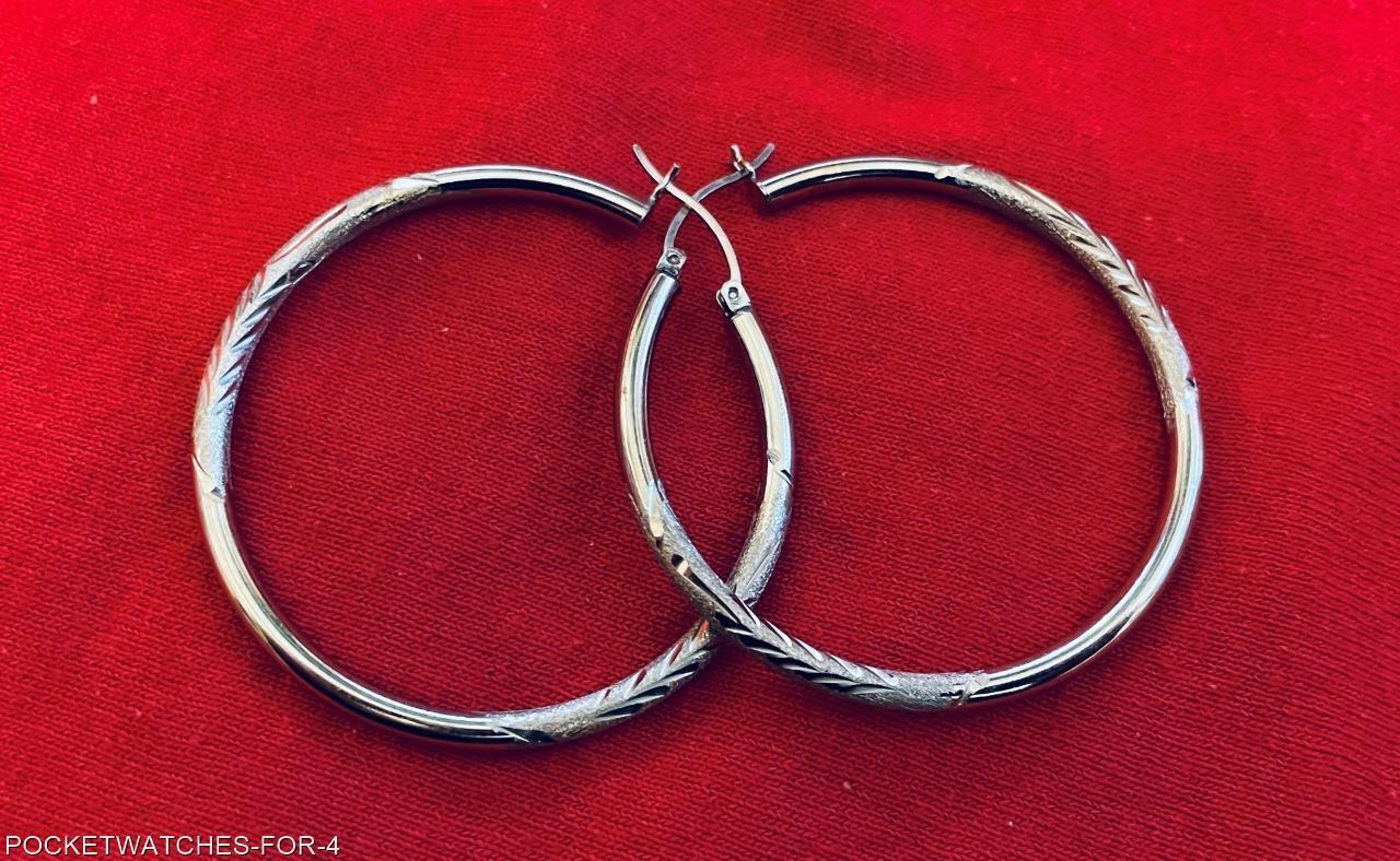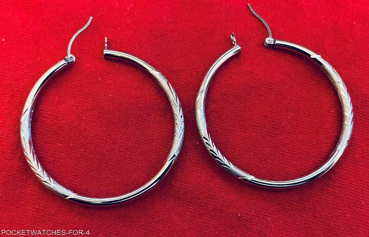 VINTAGE PAJ SOLID 14KT WHITE GOLD HOOP EARRINGS 5 GRAMS