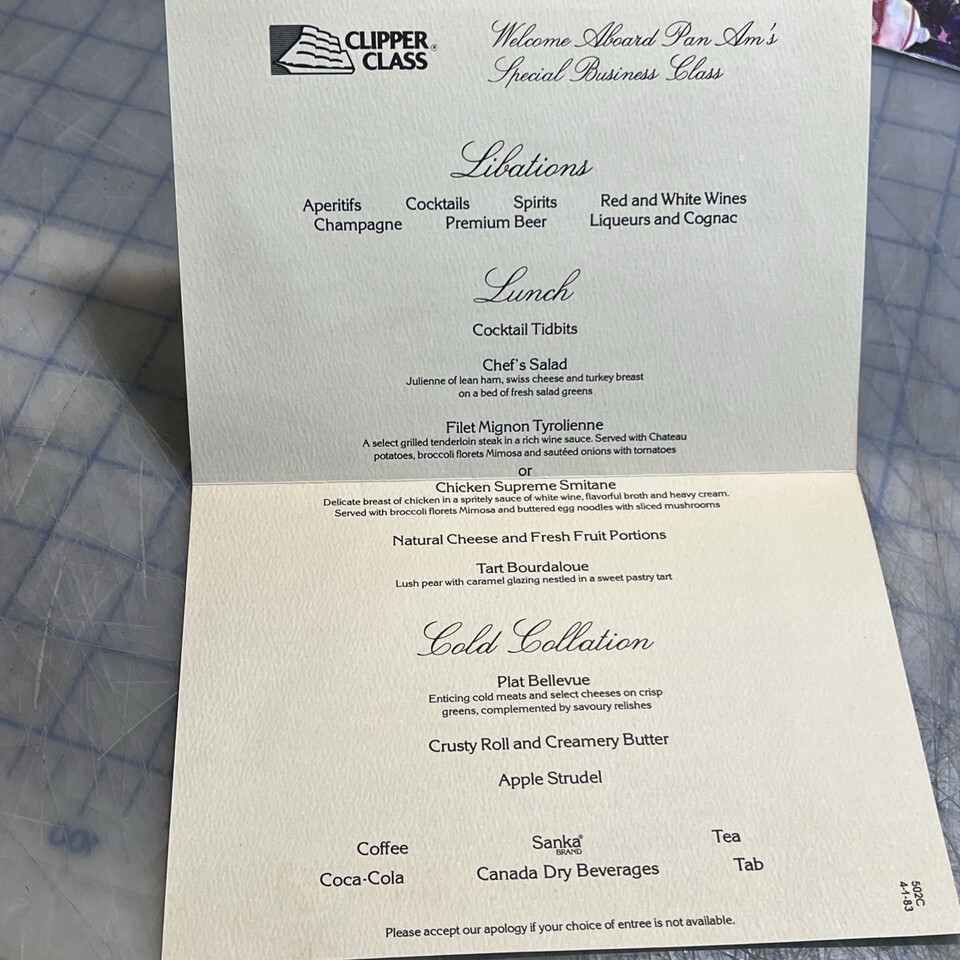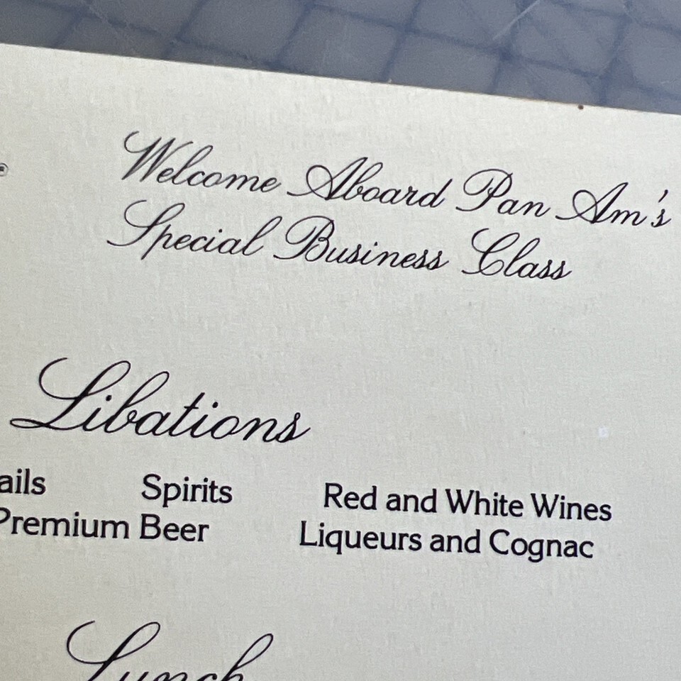 - Vintage Pan Am Business Class Menu 1980s Clipper Class