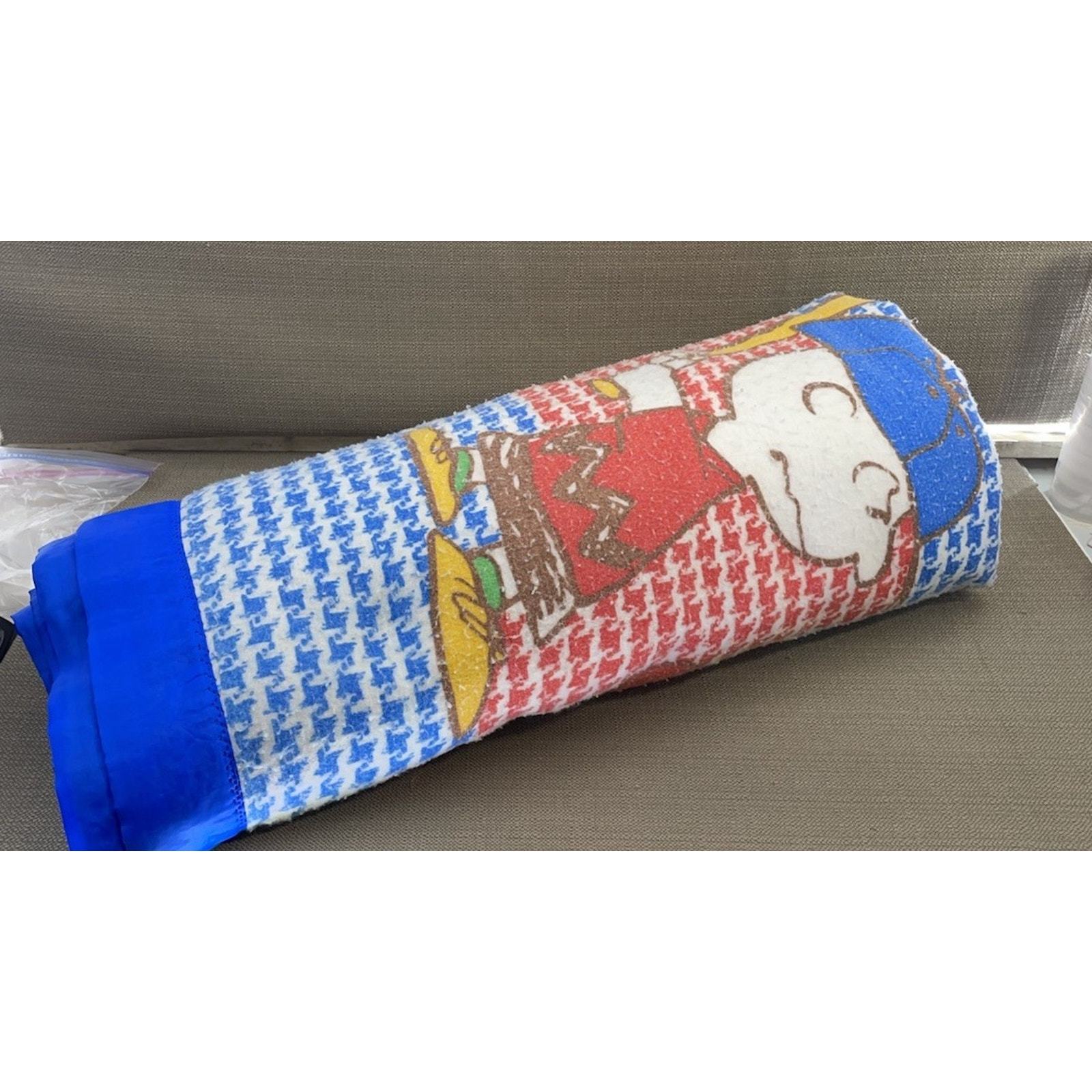 - Vintage Peanuts Snoopy Acrylic Blanket – Cheer Baseball Lucy Charlie Satin Trim