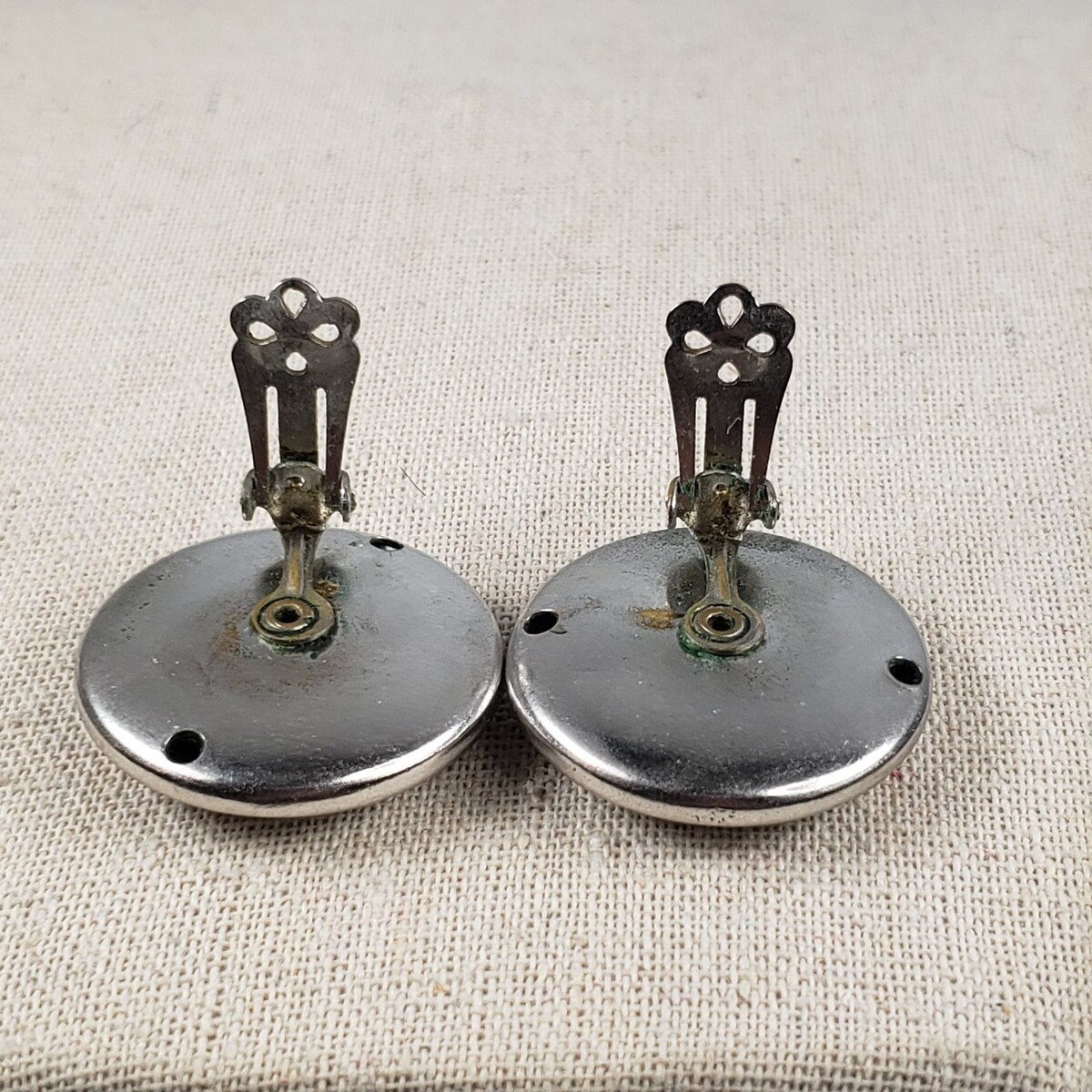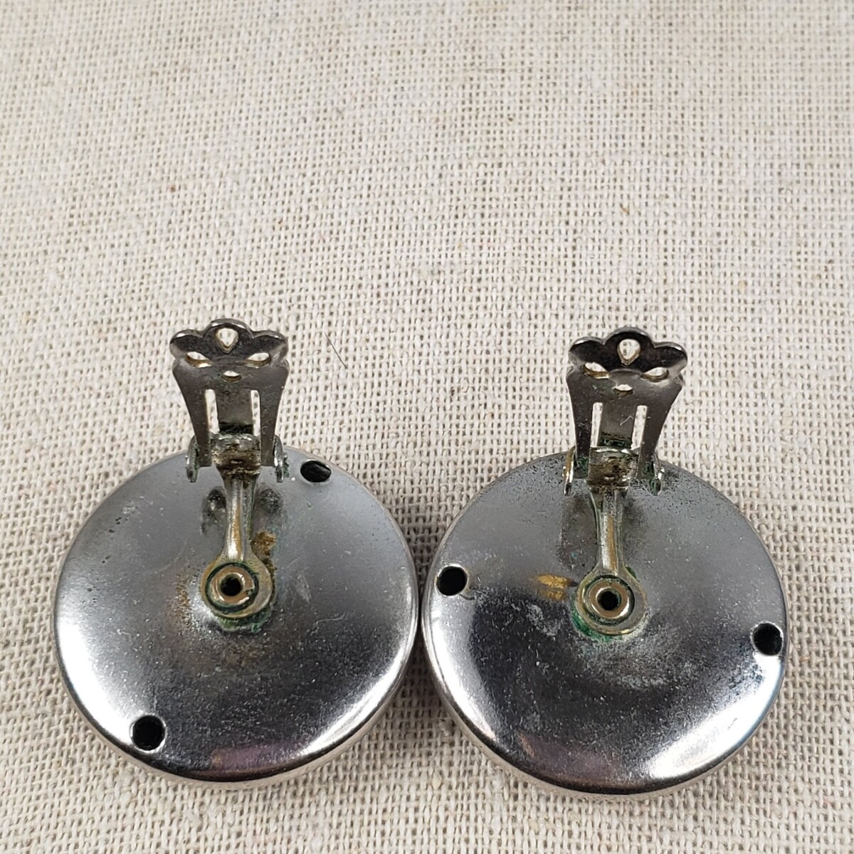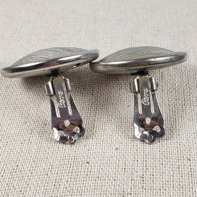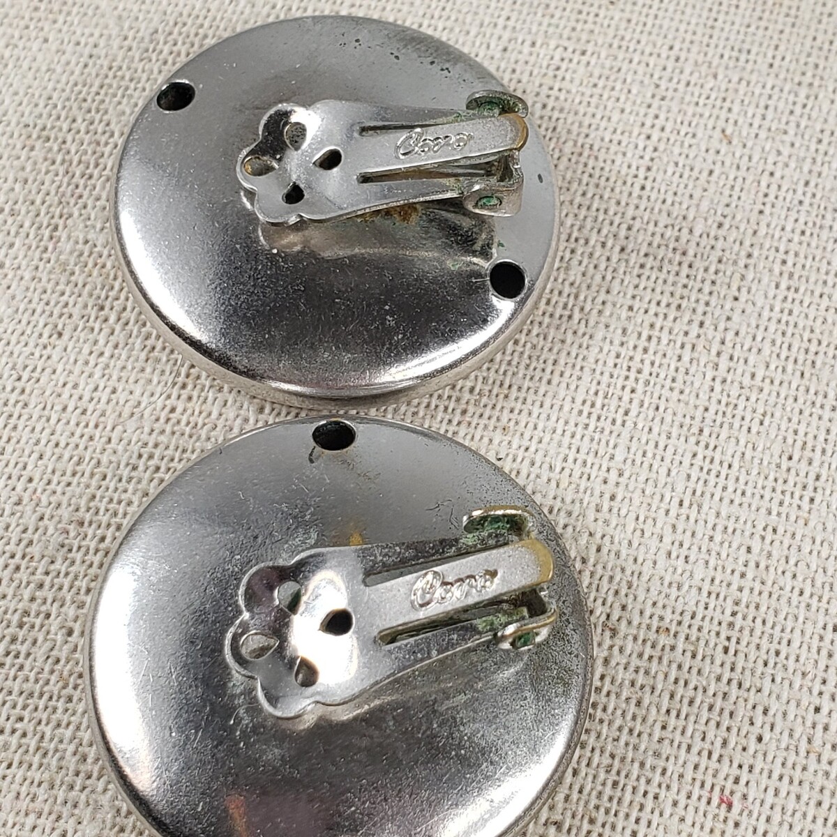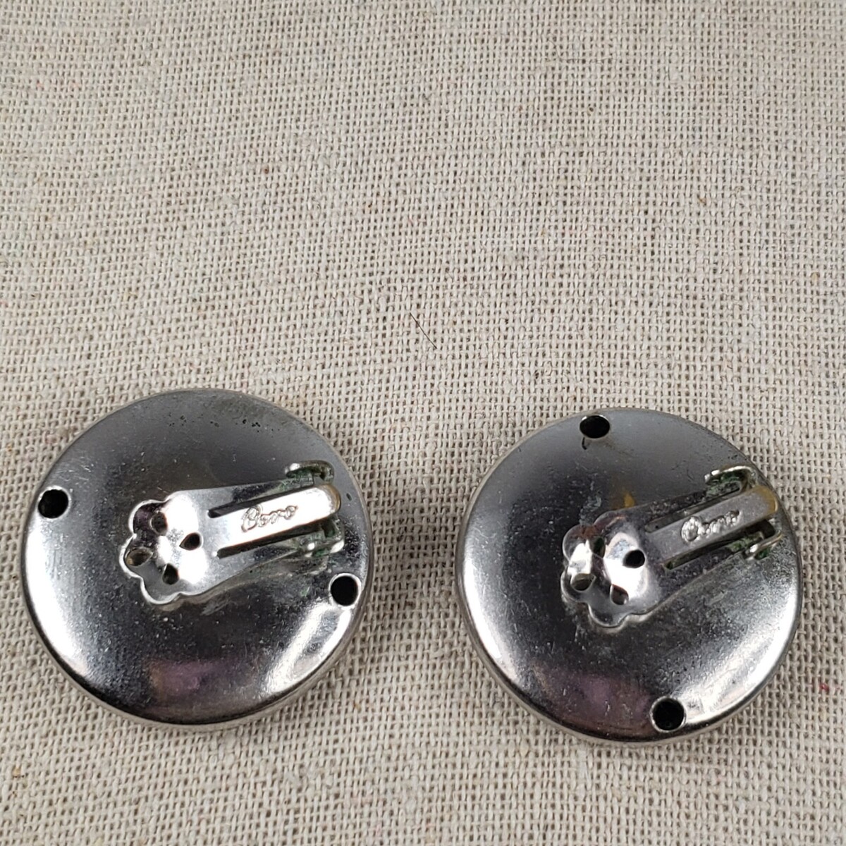 - Vintage Pegasus Coro Silver Tone Button Round Clip On Earrings Textured