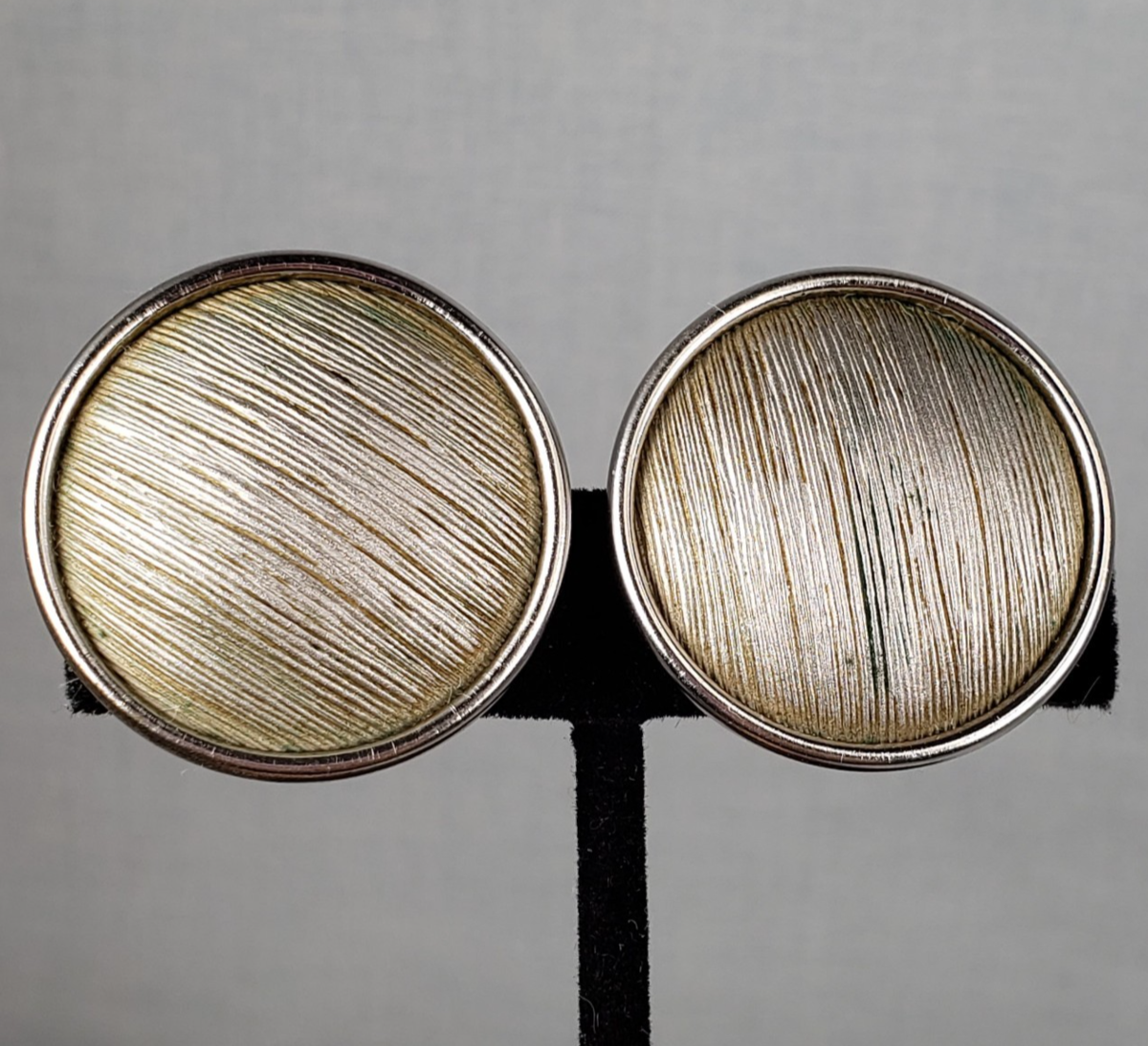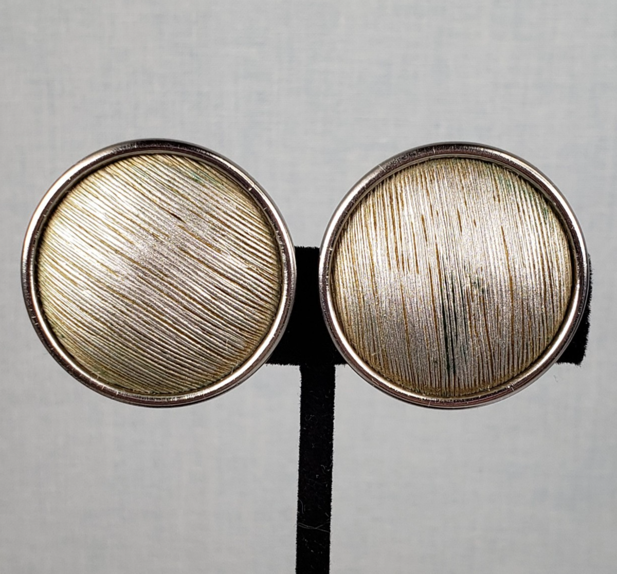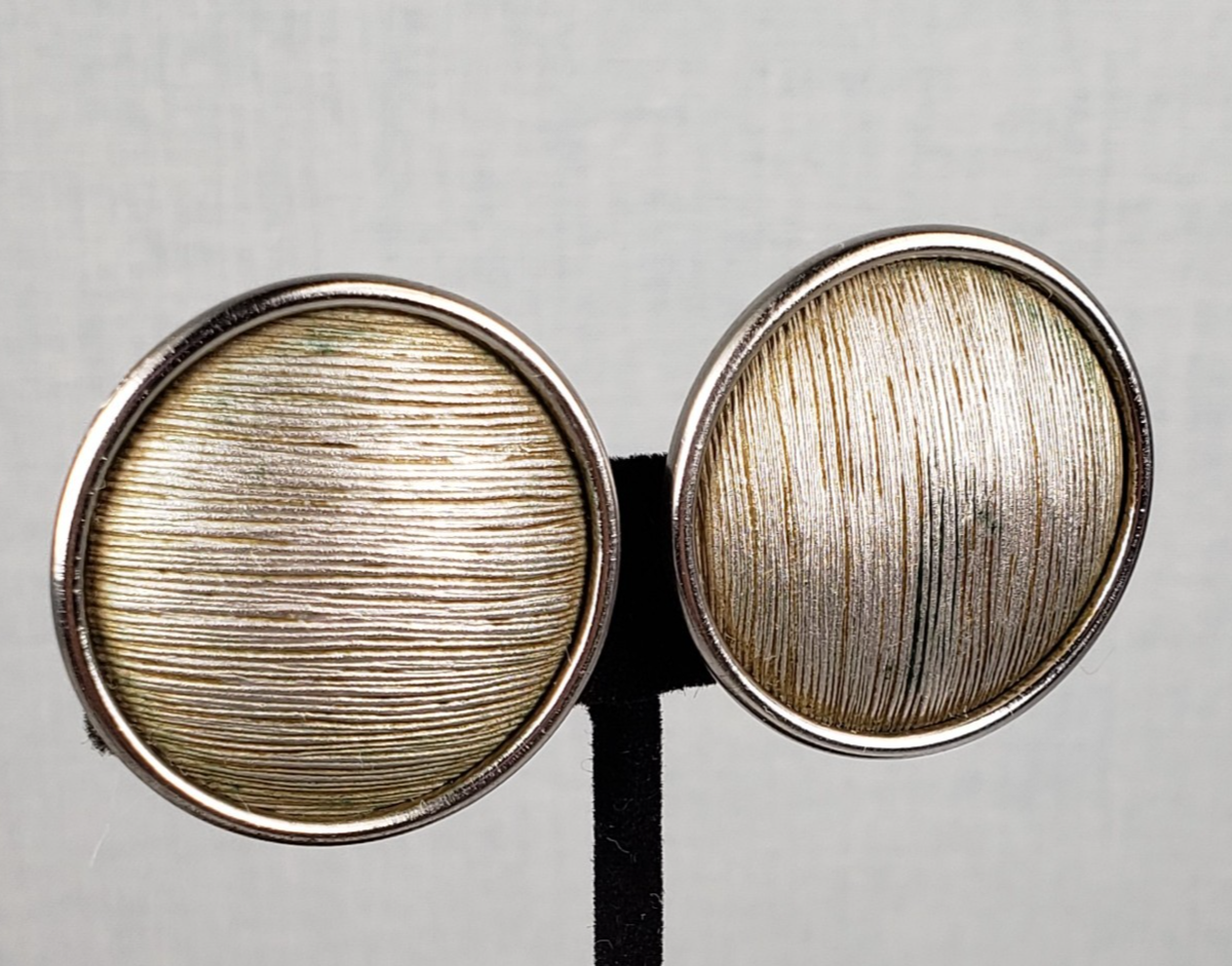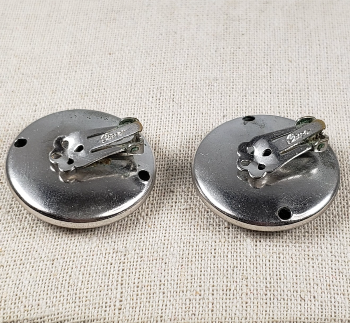 Vintage Pegasus Coro Silver Tone Button Round Clip On Earrings Textured