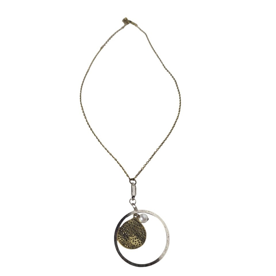 Vintage Pendant Necklace Metal Faux Pearl Womens Costume Jewelry Size: Women's OS Approximately 11.25" long Excellent pre owned condition with no rips or stains. From a smoke free and pet free home. J7