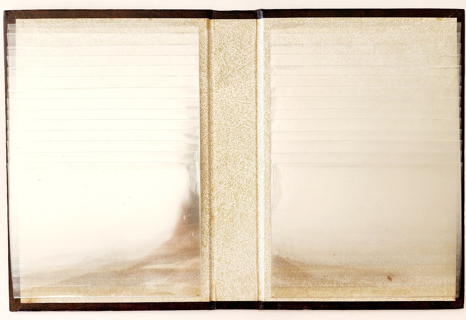In solid vintage condition with typical wear for its age. Very nice shelf stable case with 4 albums inside. Each has 28 sleeves which can hold 56 photos back to back ... up to 5" x 3.5" in size for a total of 224 in photograph capacity.