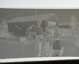 Vintage Photo Negative Child Bicycle 1940s Family Front Yard Kids