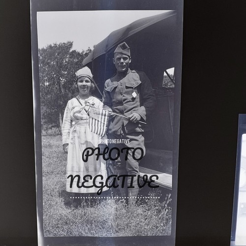 - Vintage Photo Negative WWI Soldier Patriotic Couple 1920s American 48 Star Flag