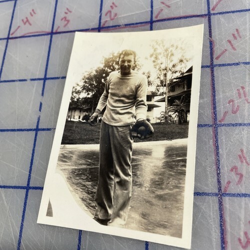 Vintage Photograph 1930s Man With Baseball And Glove Fort Clayton Panama