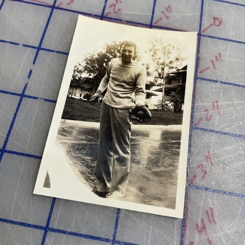 - Vintage Photograph 1930s Man With Baseball And Glove Fort Clayton Panama