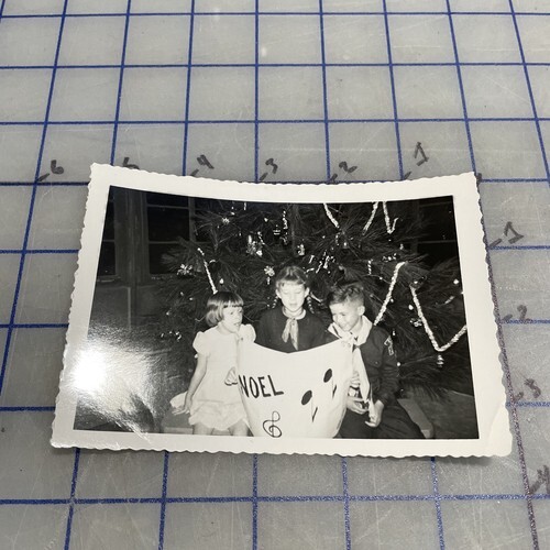 - Vintage Photograph Children At Christmas Boy Scout / Cub Scout 1950s B&W