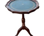 - Vintage Pie-Crust Leather Top Accent Table Mahogany Pedestal Side Table Green