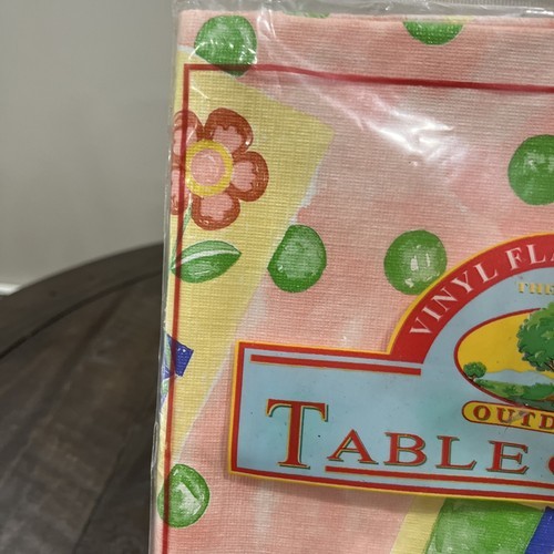 Primary image for Vintage Pink Flower Retro Vinyl Tablecloth Flannel Backed 52 X 52 Best Home Dots