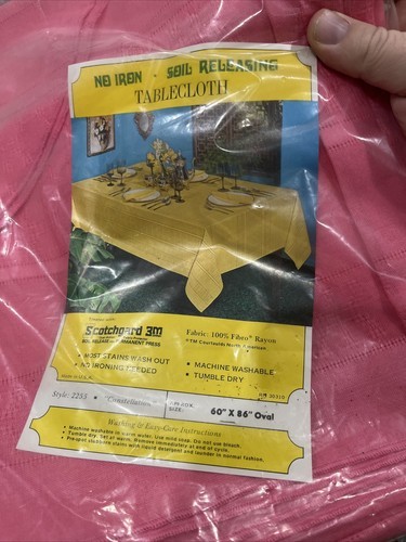 - Vintage Pink Oval Tablecloth 60" x 86” Shabby Cottage Protected Light Linens NOS