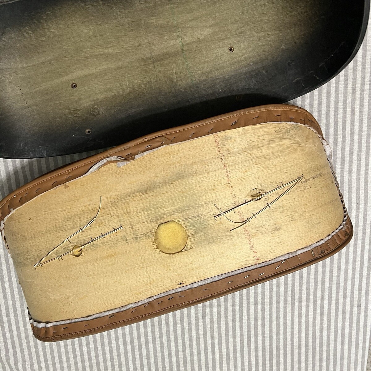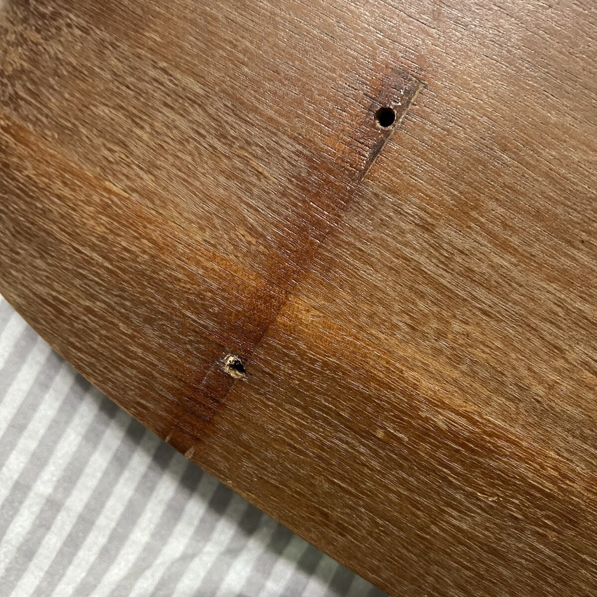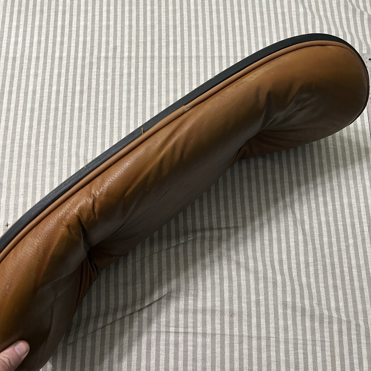 Vintage Plycraft head rest pulled from lounge chair for restoration. The material is discolored.