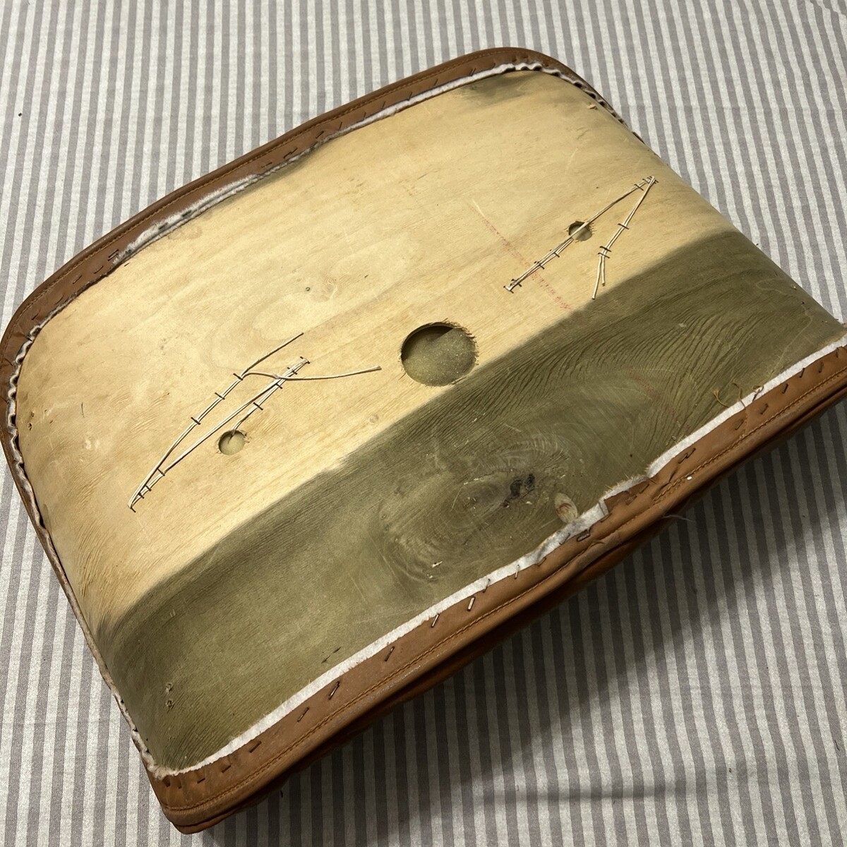 Vintage Plycraft back rest pulled from lounge chair for restoration. The material is discolored.