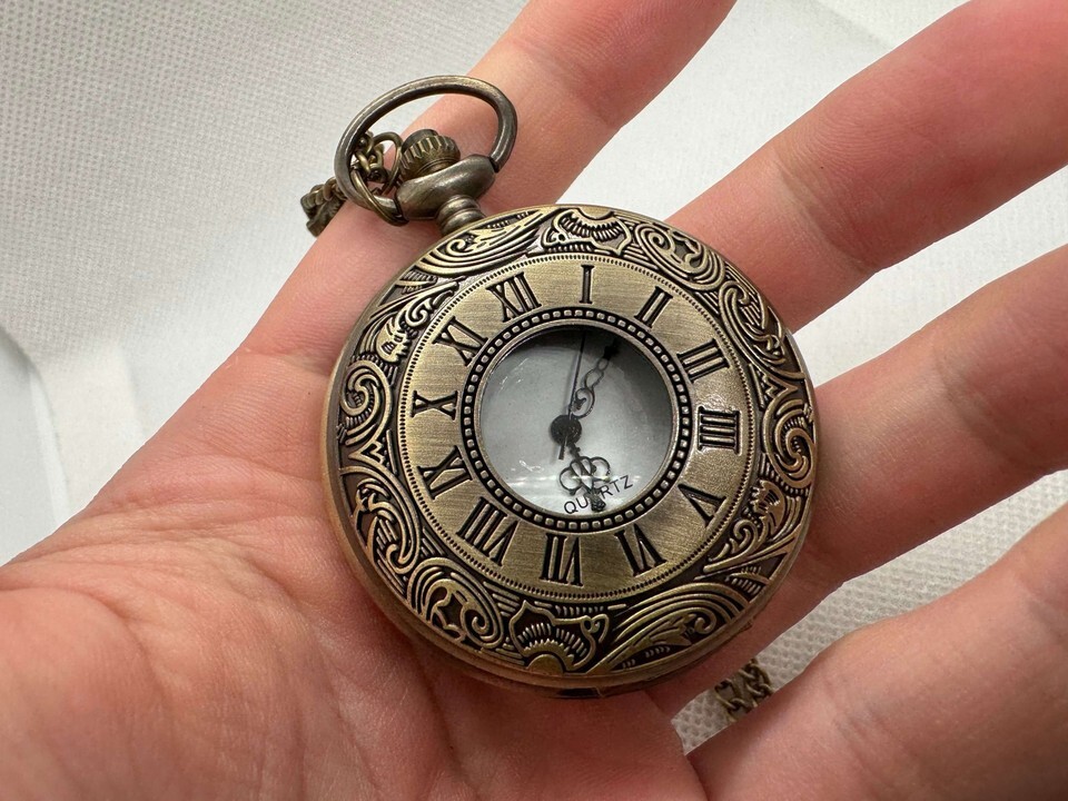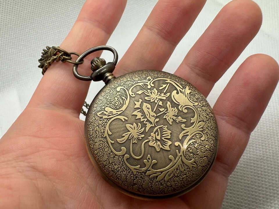 The quartz mechanism guarantees accuracy and reliability, essential features for any modern watch. Historically, pocket watches symbolized social status and sophistication, and this model is no exception. The details on the back cover, including floral motifs, reflect the Art Nouveau style that flourished at the turn of the 19th to the 20th century, characterized by a love for natural forms and ornamental decorations. These pocket watches serve not just as practical timekeeping tools, but also as fashionable accessories reminiscent of the artistic currents of their time.
