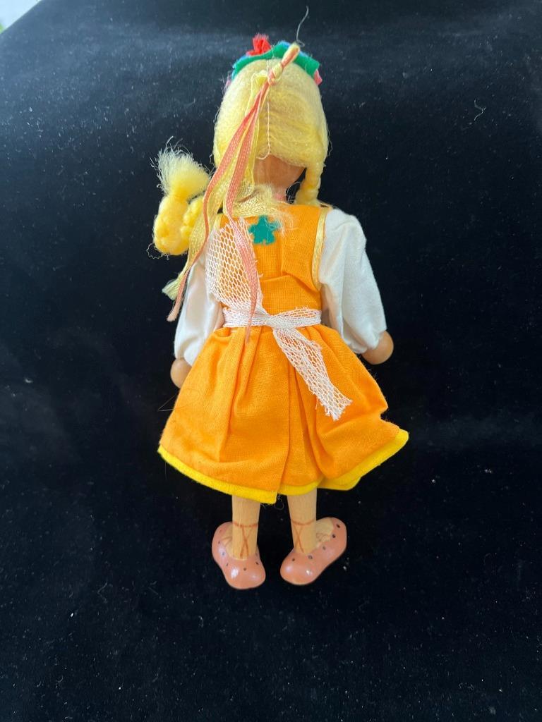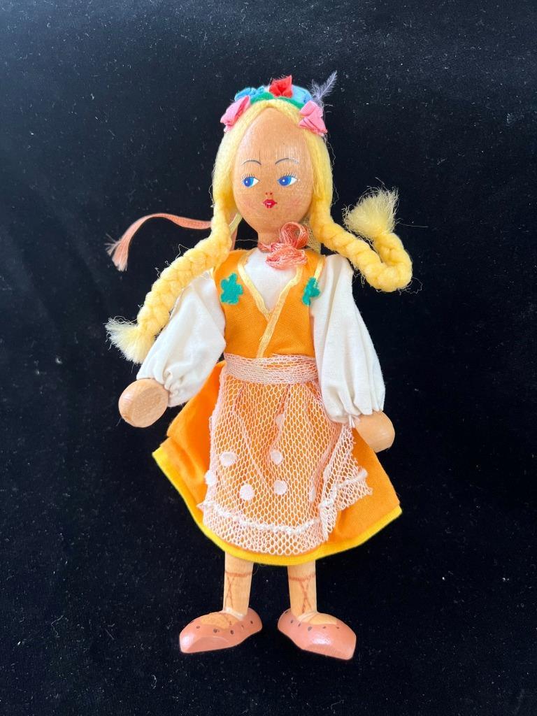 Vintage Polish Peg Doll Traditional Wooden Handmade in Poland Blond Hair