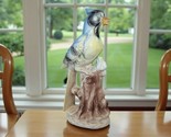 - Vintage Porcelain Blue Jay Bird Figurine Japan Stump 10" Tall Leaves Singing