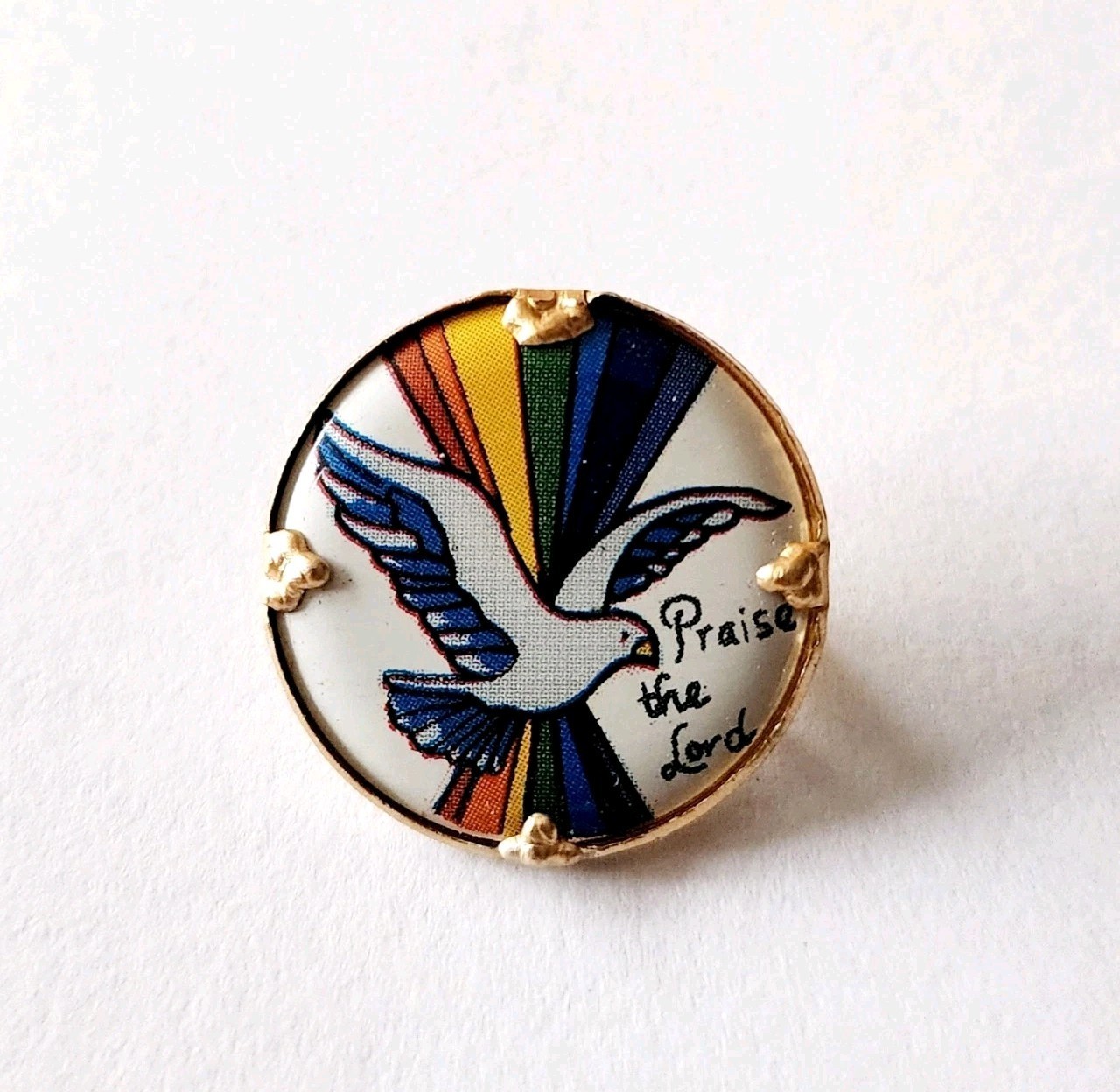 Vintage Praise The Lord Pin Hong Kong Rainbow Dove NOS 1" Religious F7F6
