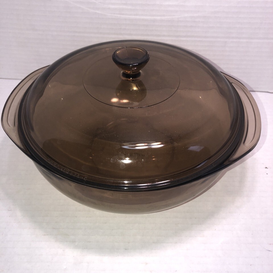- Vintage Pyrex #024 Tinted Amber Brown 2 Quart Round Casserole Dish Bowl with Lid
