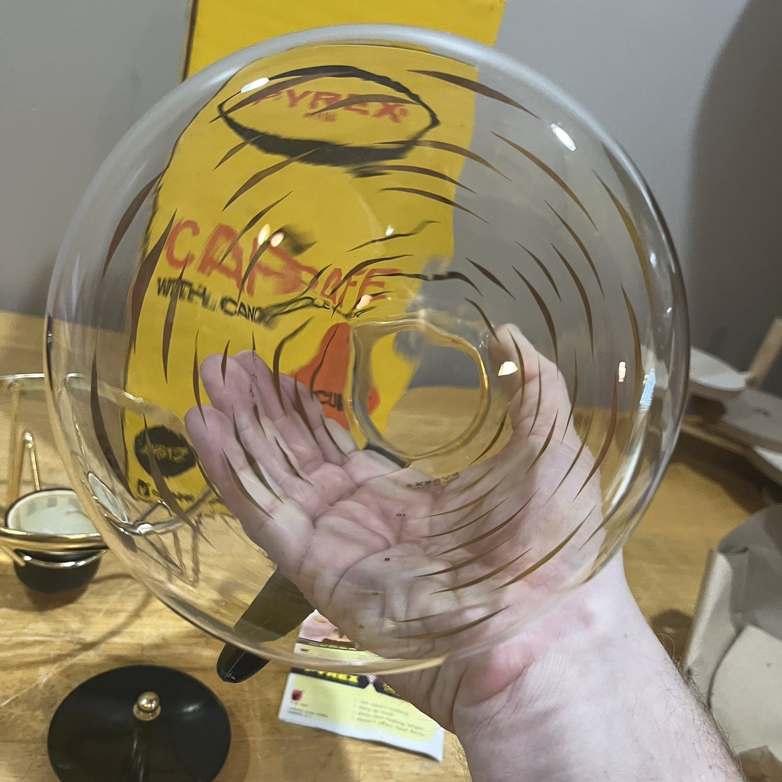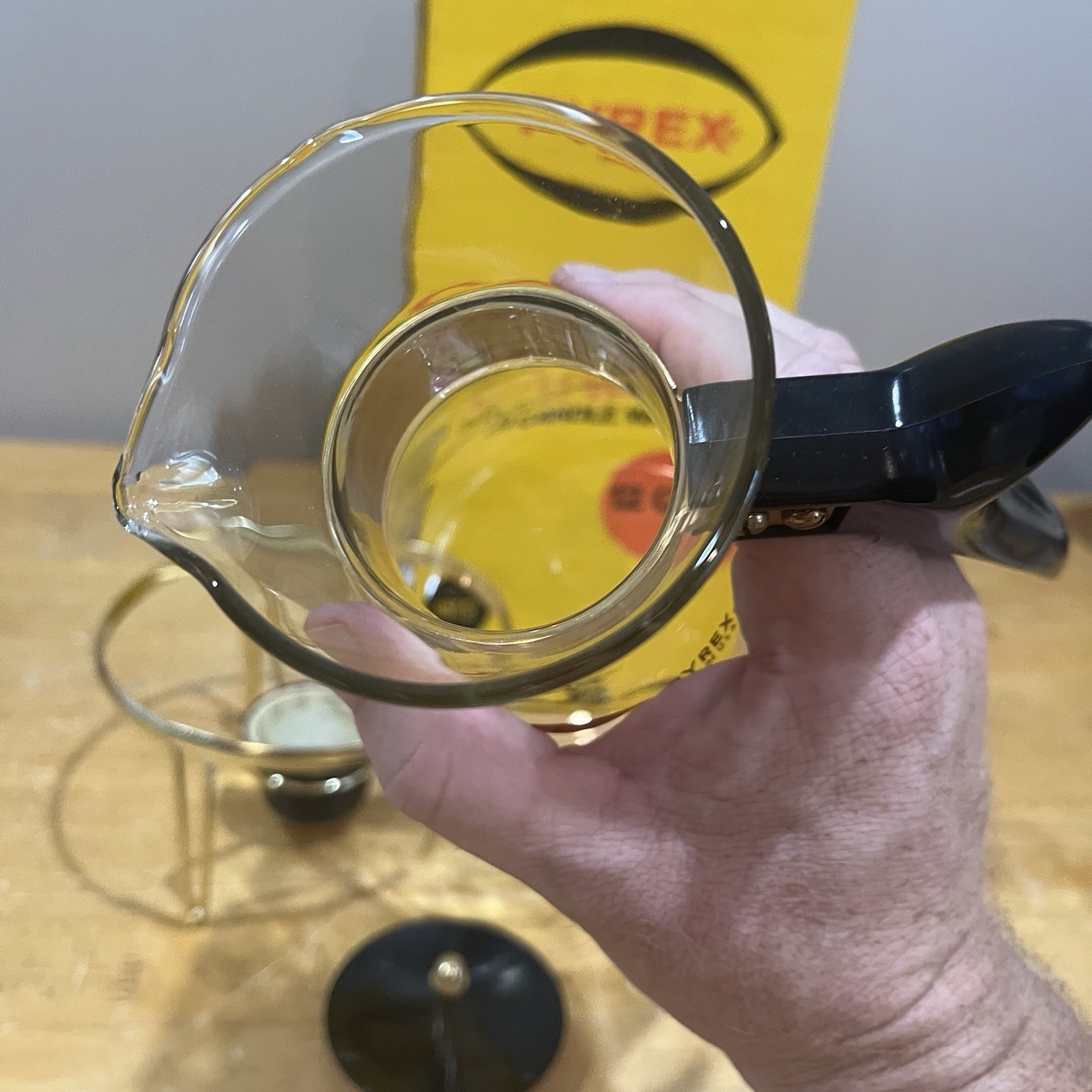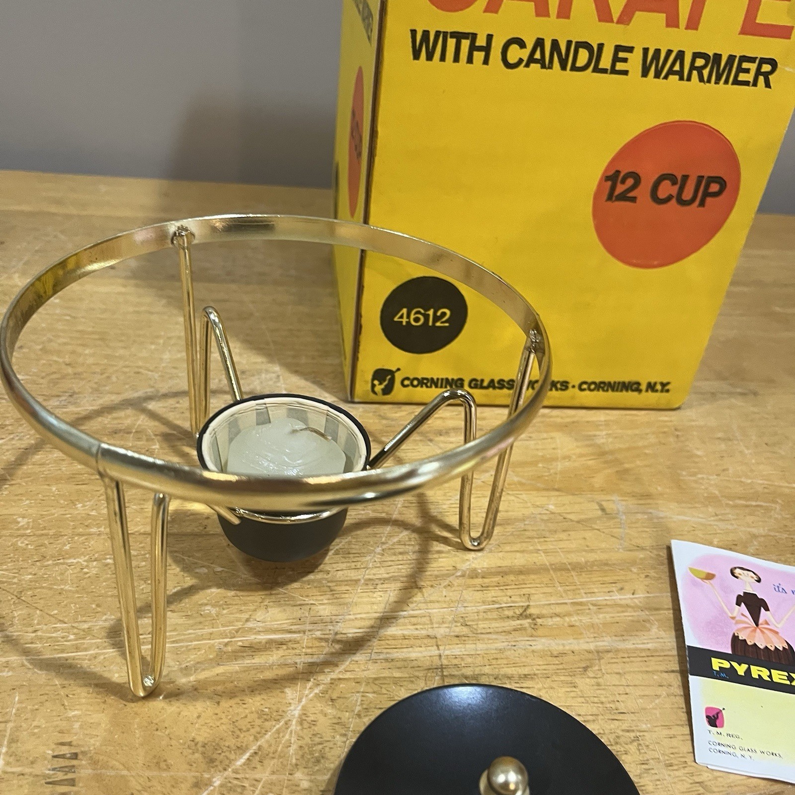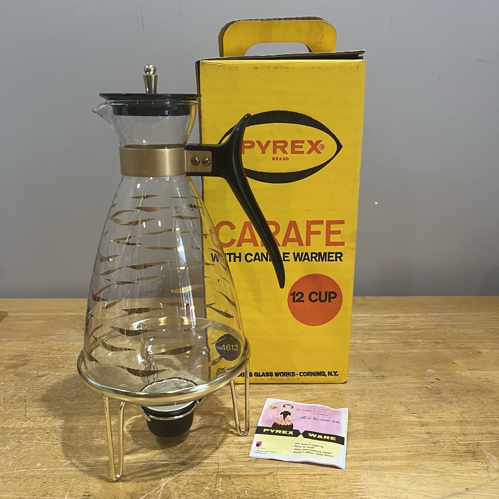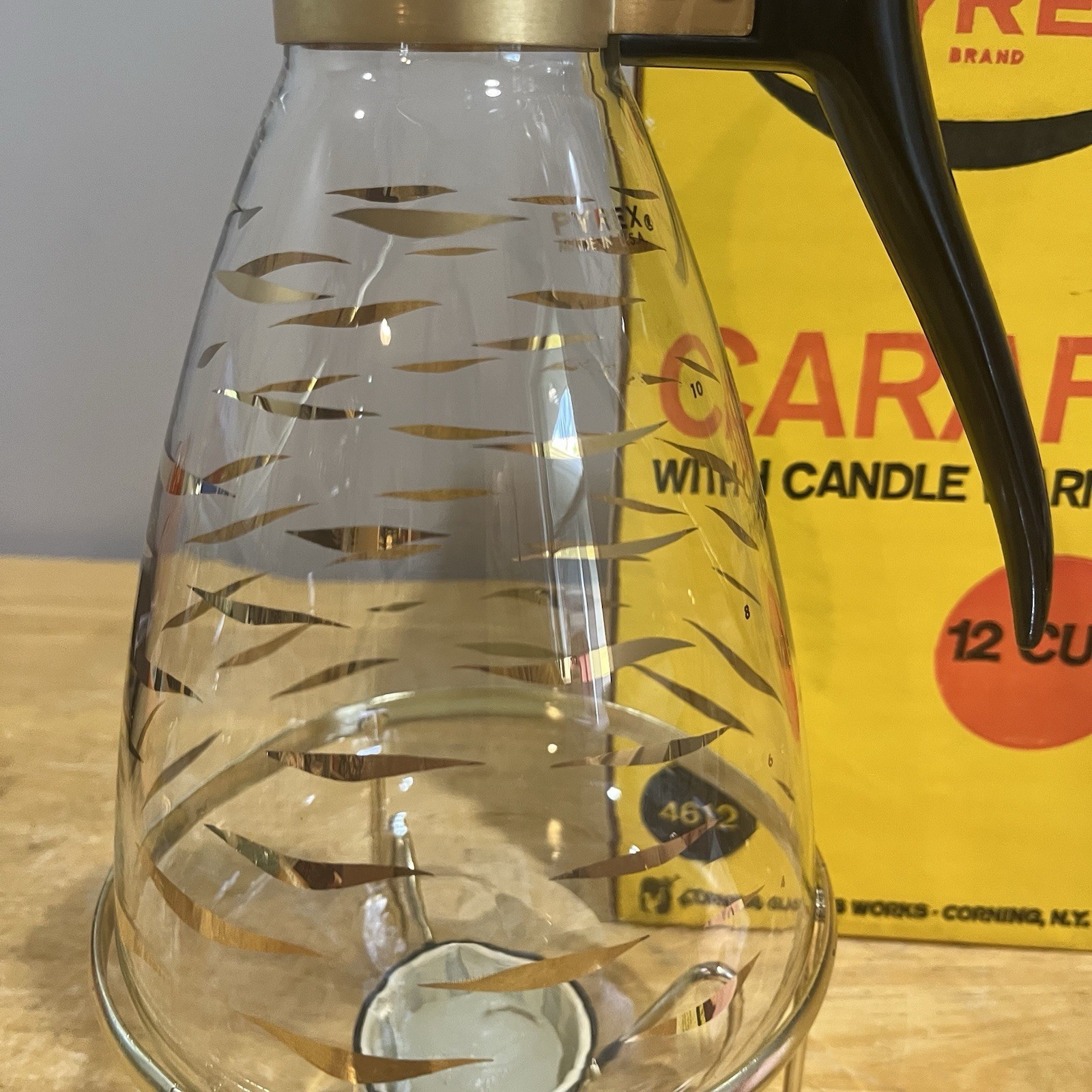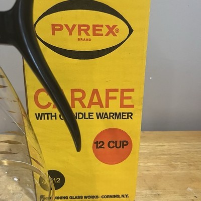 - Vintage Pyrex 12 Cup Glass Carafe Candle Warmer No. 4612-1 + Box Gold Diamond